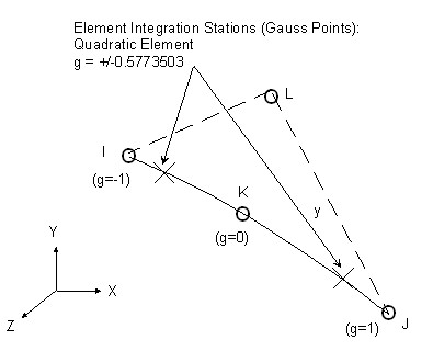 当元素的材料具有非线性状态或有通过剖面的温度时,计算是在积分点上进行的。在大量通用弹性应用中],元素采用剖面积分点的pre-calculated 特性。应此,应力与应变的输出均是经过了积分点的计算的。