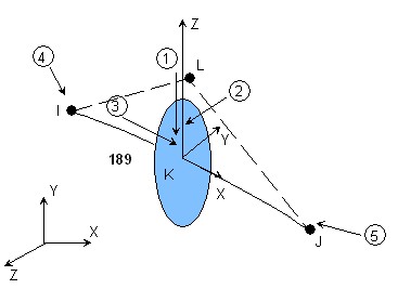 元素的几何形状,节点位置与坐标系统均如图 BEAM189 所示 。 BEAM189 在全局坐标系中由节点 I, J,和 K 来定义。 节点 L 是元素所必需的方向定义节点。 关于元素划分中的方向节点,详见 Generating a Beam Mesh With Orientation Nodes 于ANSYS Modeling and Meshing Guide中。 同样于同一本书在 Quadratic Elements (Midside Nodes)可见关于中节点(midside nodes)的描述。在 LMESH 和 LATT 命令描述中可见节点 L 的自动生成。 关于低次( low-order)梁可见 BEAM188 。