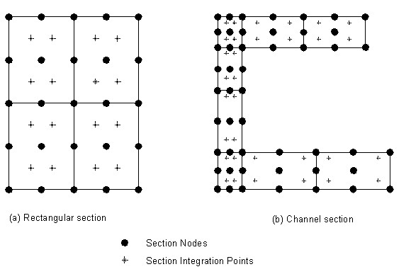 The beam must not have zero length. The section associated with the beam may not have any more than 250 cells. This restriction is applicable to the standard library sections that allow user specification of section model size, and for the MESH section subtype. By default (KEYOPT(1) = 0), the effect of warping restraint is assumed to be negligible. Cross-section failure or folding is not accounted for.