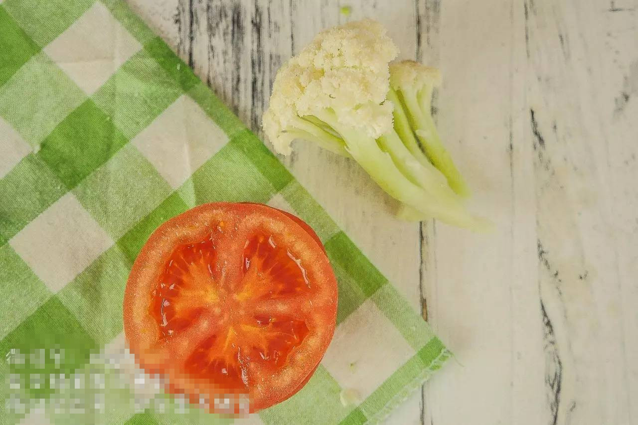 虽然花菜的颜色很浅,营养却是杠杠滴!花菜中的蛋白质、维生素、钾和膳食纤维的含量可是一点也不逊色哦!番茄的营养就更不用说,绝对不输于绿叶蔬菜。
