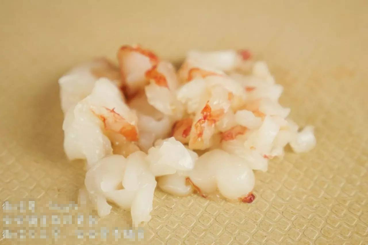 PS:小宝宝吃的虾肉,最好处理得仔细一点。如果虾线不去除干净,会加重虾的腥味,在挑虾线的时候即便断开也没关系,继续挑剩下的部分就可以了。