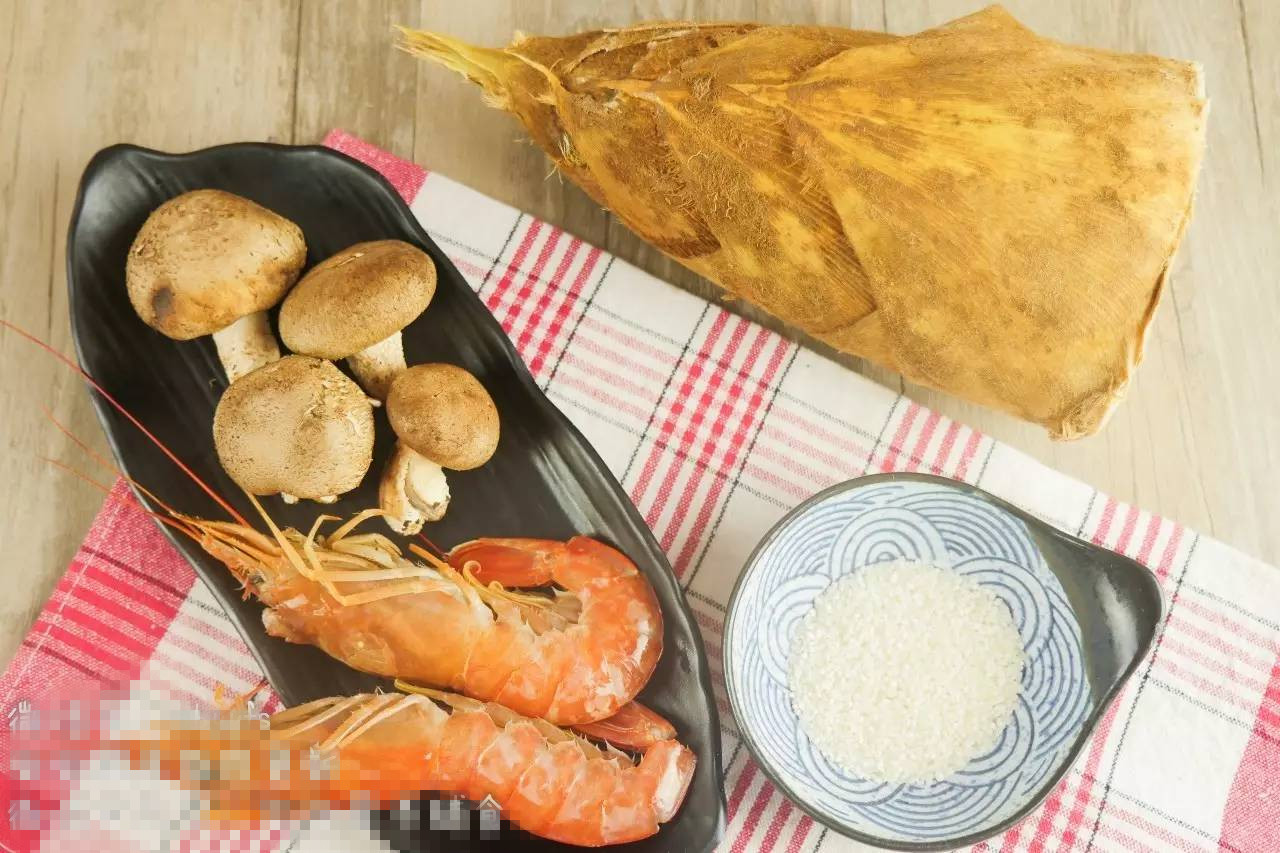 食材:阿根廷红虾2只、冬笋16g、香菇两朵、粥米20g
