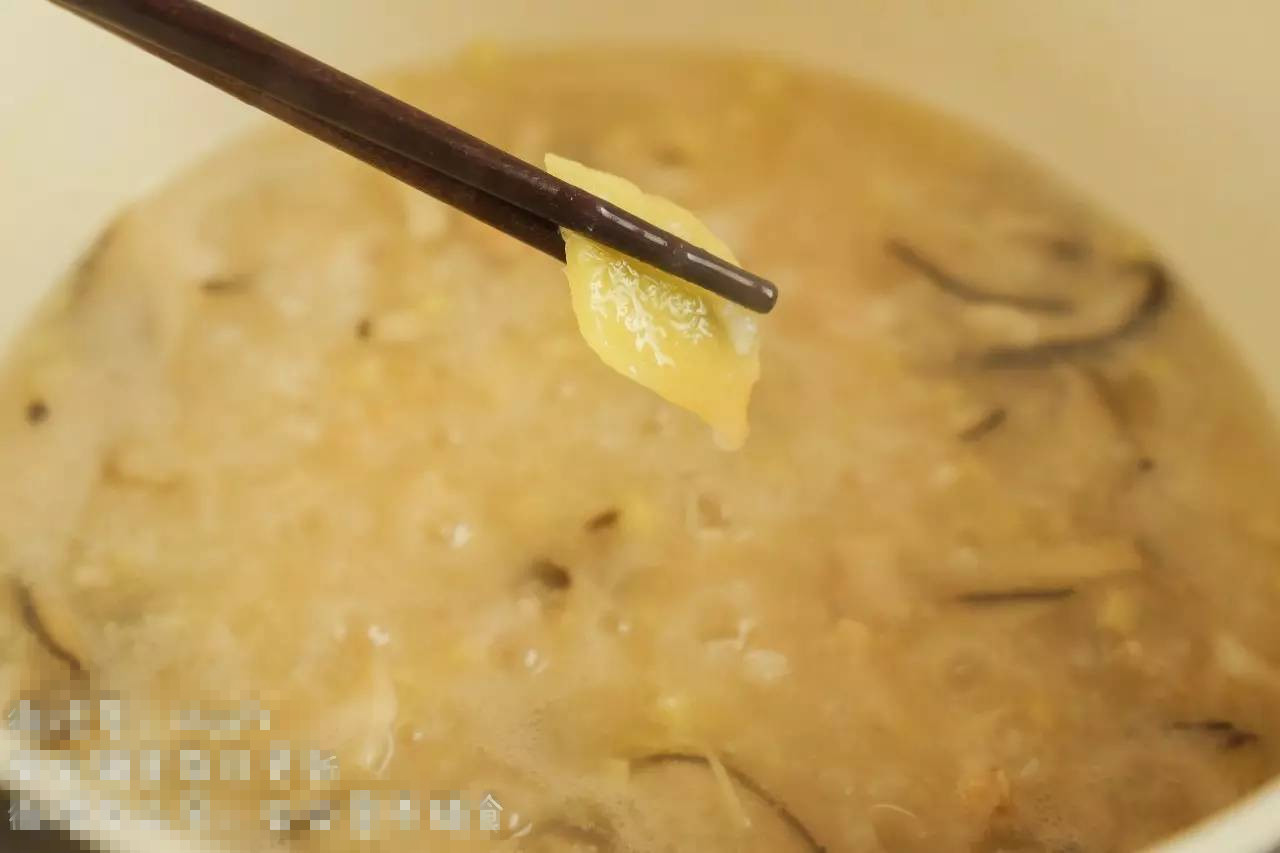 同时,我还搭配了香菇和笋,这笋也是非常鲜美的食材,把一锅粥煲出了汤的鲜美,快动手做给宝宝和家人们品尝吧。