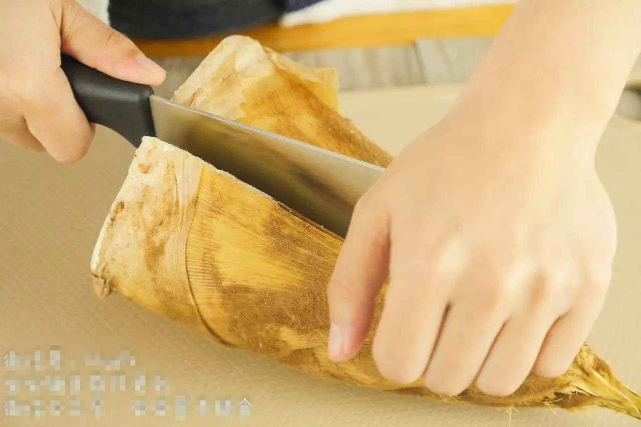 PS:一般在处理笋的时候,如果用手一层一层地剥会很累,所以我通常会直接刀将笋纵向切开。