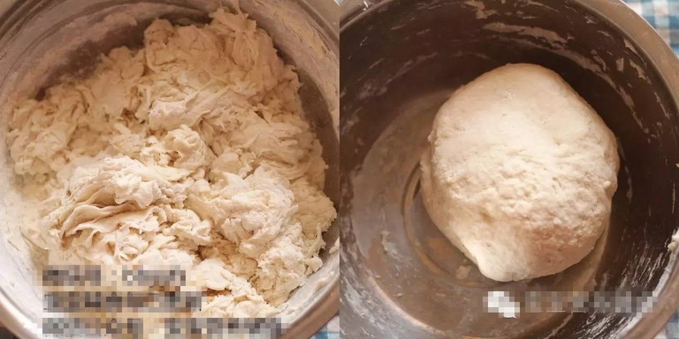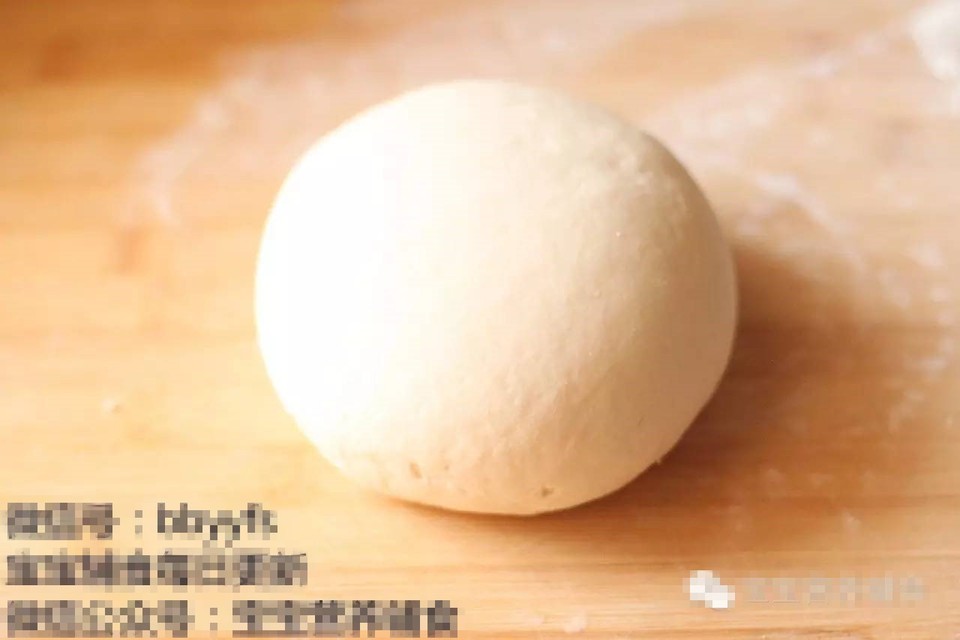 PS:很多宝妈觉得揉面比较麻烦,其实我也是怕麻烦,所以每次面团揉得时间非常短,在这一步只要保证所有棉絮状的小面块儿都粘在一起就好了。
