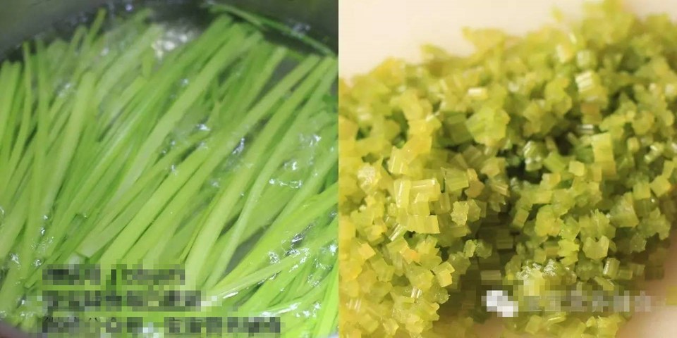 PS:焯芹菜的时间不能太久,1分钟左右就差不多,像我这样一忙别的,时间长了,就焯过火,颜色都不翠绿了。