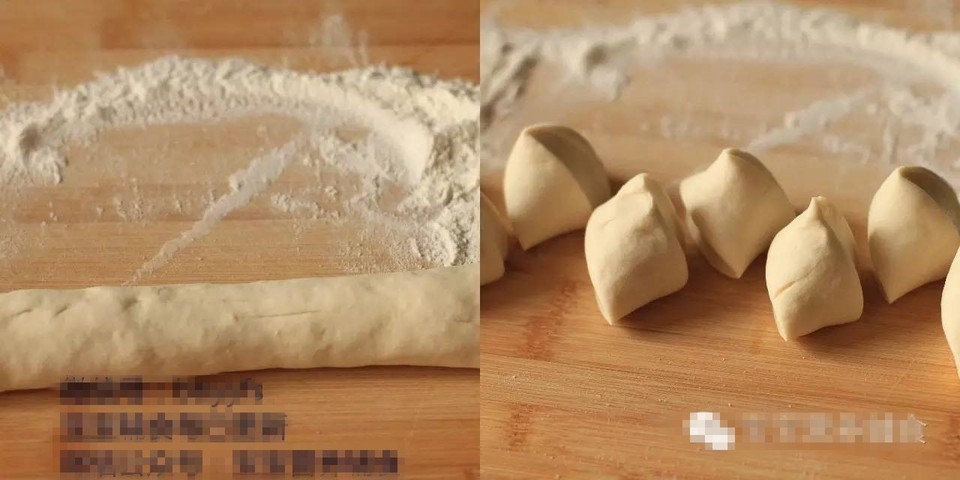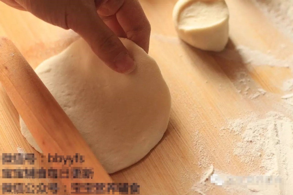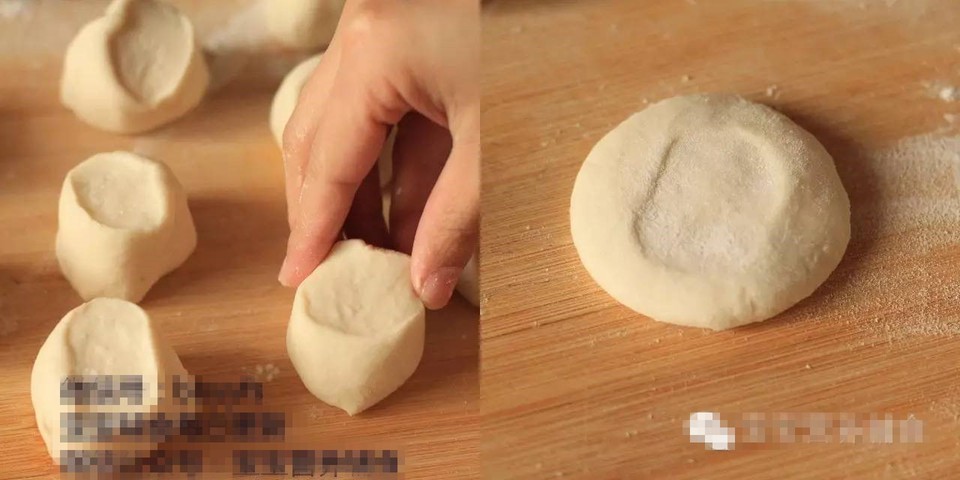 12. 因为用刀切小剂子的时候,小剂子有刀痕会变形,所以需要用手把它再捏回来,捏成标准的圆柱体。再用手掌一压,就会很轻松地变成一个非常圆的圆饼了。