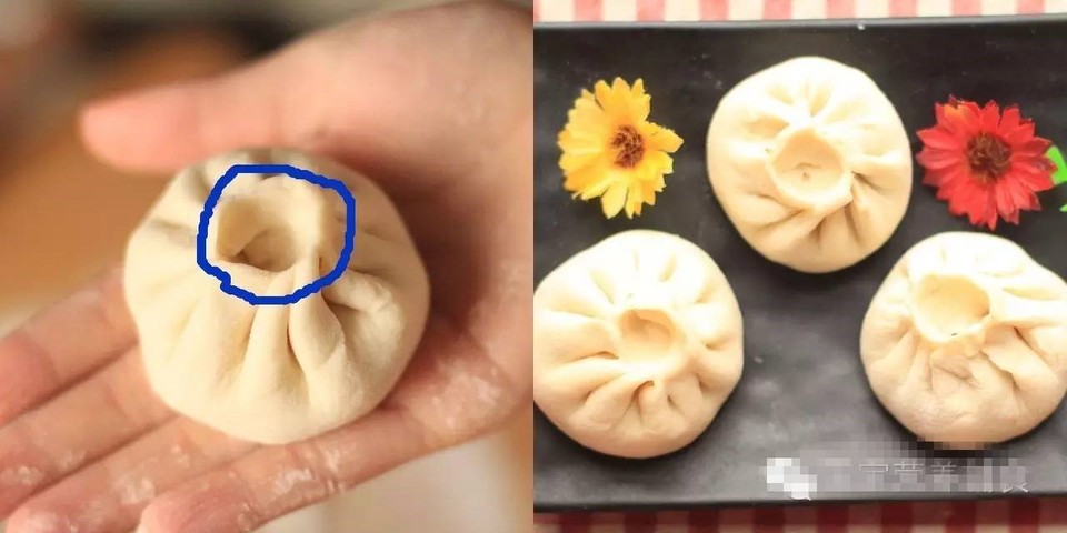 PS:单单放在面板上,温度过低,很难起到发酵变大的作用。因为我是12个包子分上下两帘来蒸,这是上层的照片,上层离热源比较远,发酵的效果不如下层好。