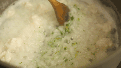 PS:这次的粥如果不去腥的话,宝宝可能接受不了。可以用柠檬汁来去腥,也可以用葱姜切好泡水,做出葱姜水,多把鱿鱼腌制一会,用清水多冲洗一下,这样能缓解很多怪味道。