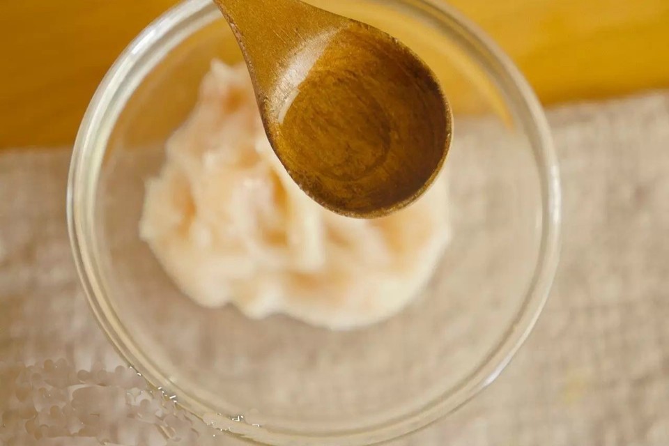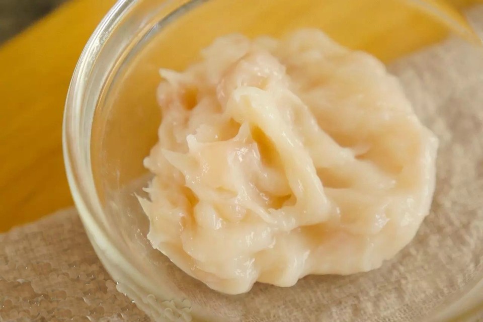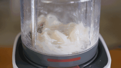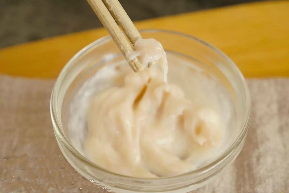 PS:我这次大约加入了3勺,加入清水的作用是为了让鱿鱼泥变得细腻顺滑,这样做出的鱿鱼滑会更细腻更软嫩,宝宝也能吃的动。