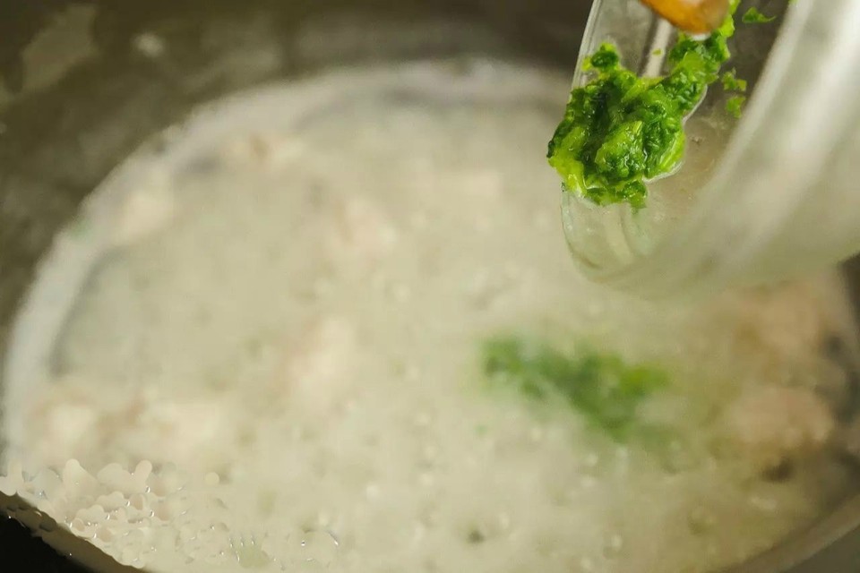 PS:先下鱿鱼滑,因为相比小白菜鱿鱼滑需要煮的时间长一些,所以需要先下入。