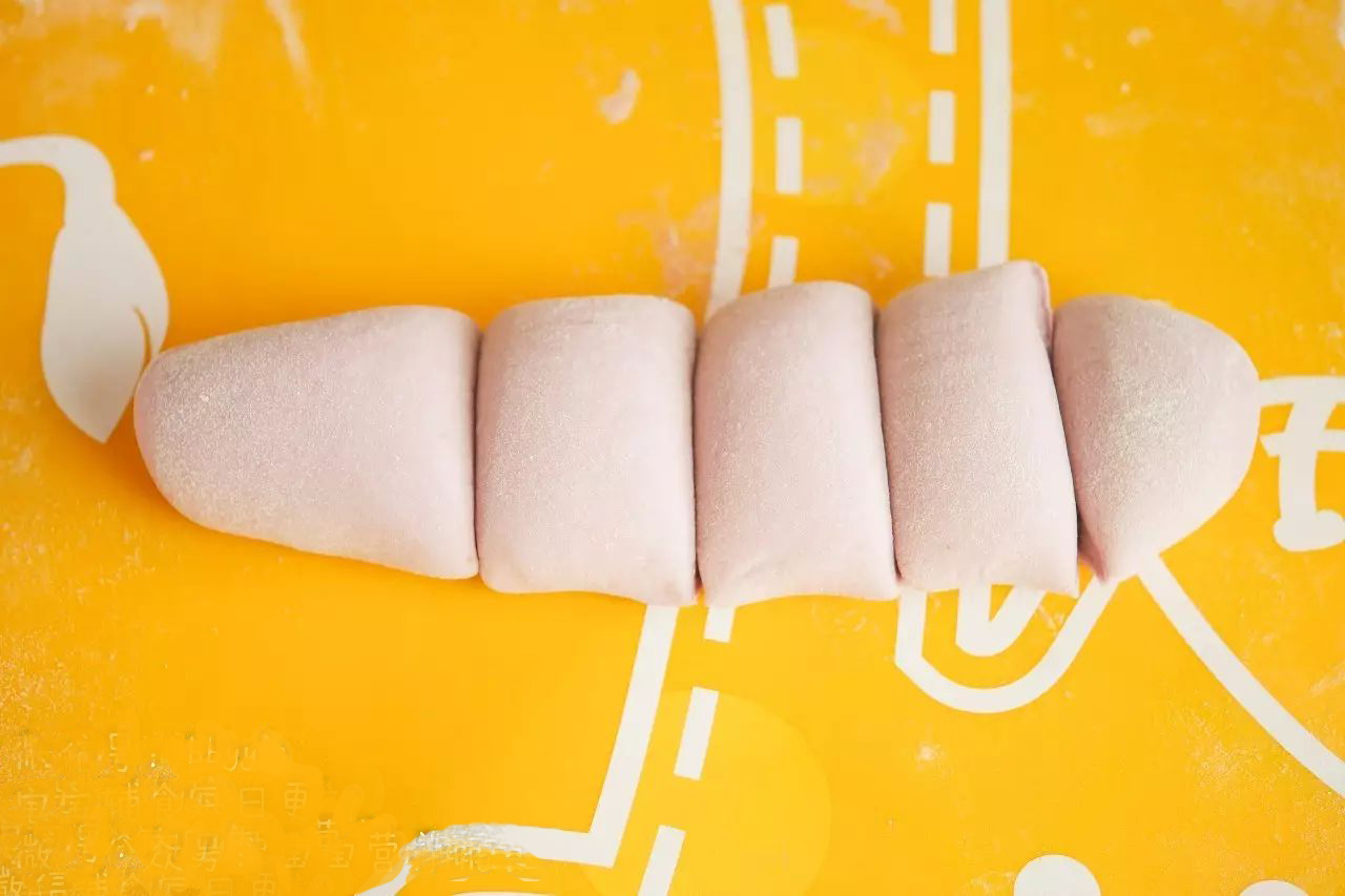 16. 将面团先揉成长条形,再切成等分的小面剂子。