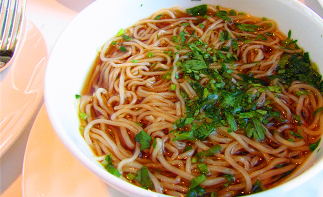 在北京,怎么也要吃碗面条。新鲜的香葱、香菜让这个早晨清新芬芳起来。