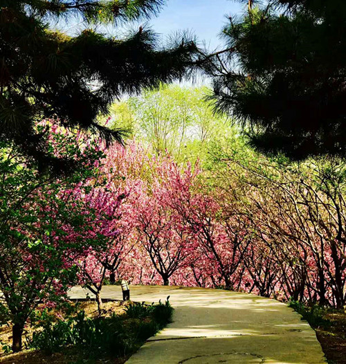 栈道是用废弃的枕木建成,走在上面,你能否感受到曾经火车驰骋的旧时光?而在它四周的火炬树、毛白杨、国槐、白蜡、美人梅、金银木、连翘、地锦、紫藤们,则演绎着新生命的多彩颜色……