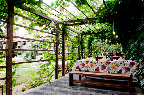 当然,累了渴了饿了,你可以找个地方在花藤下,玻璃房中来点吃吃喝喝、与花花草草、阳光轻风为伴。