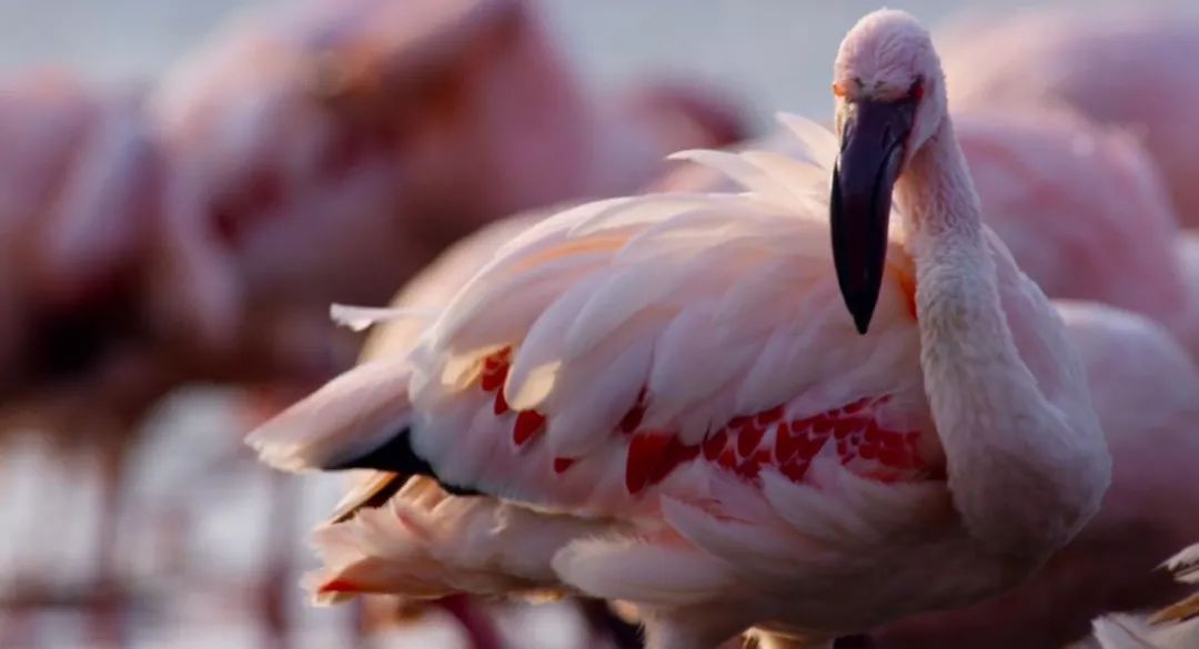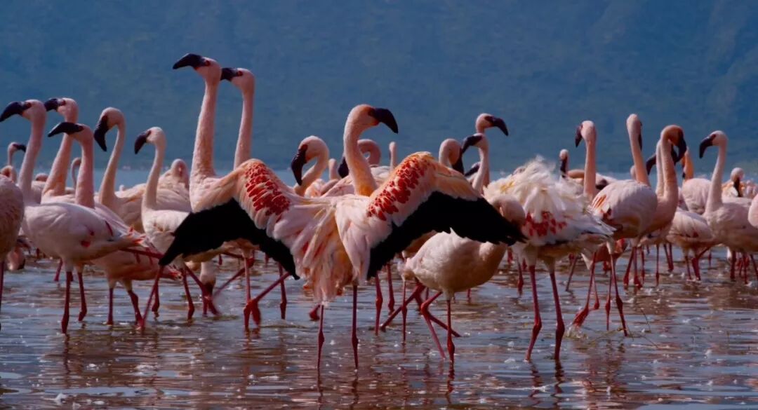 而火烈鸟却能以这里的藻类为生 在此翩翩起舞