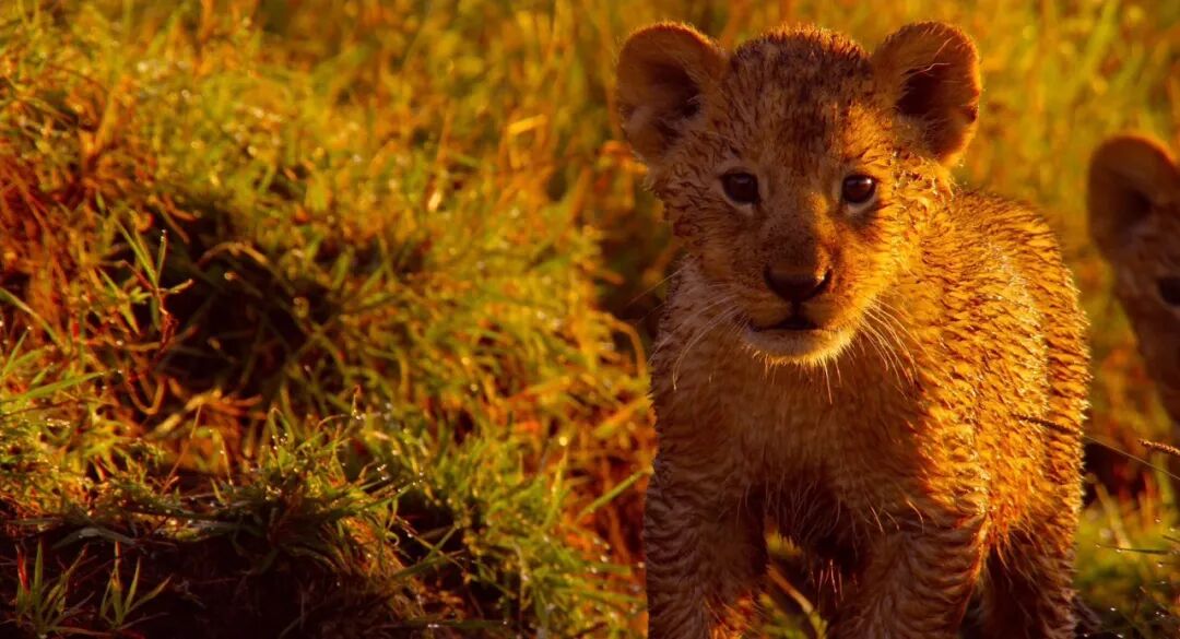 未来的草原之王好奇地打量着这个神奇的世界
