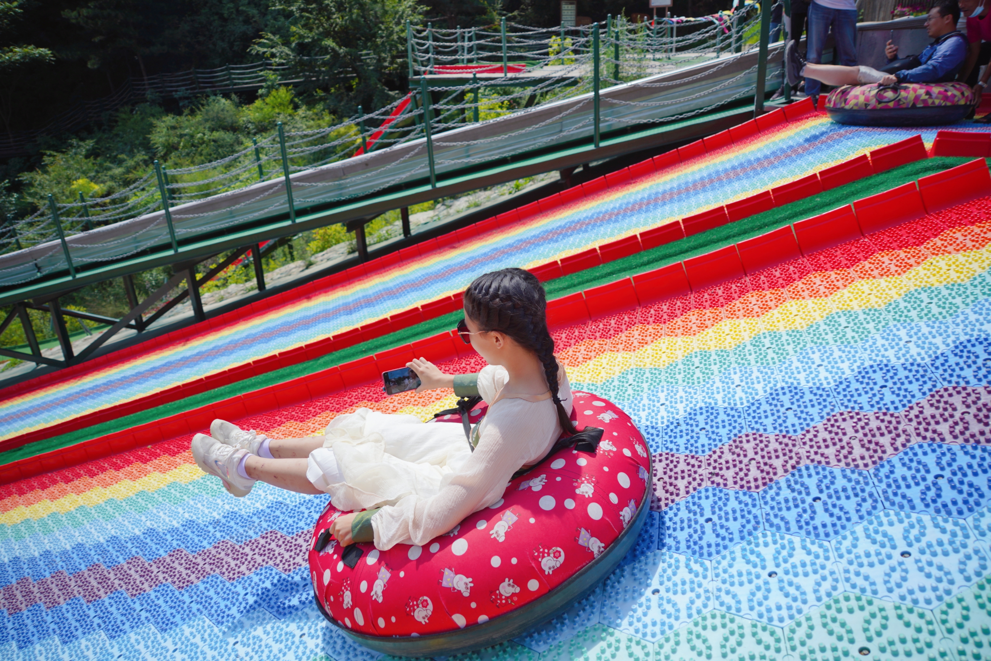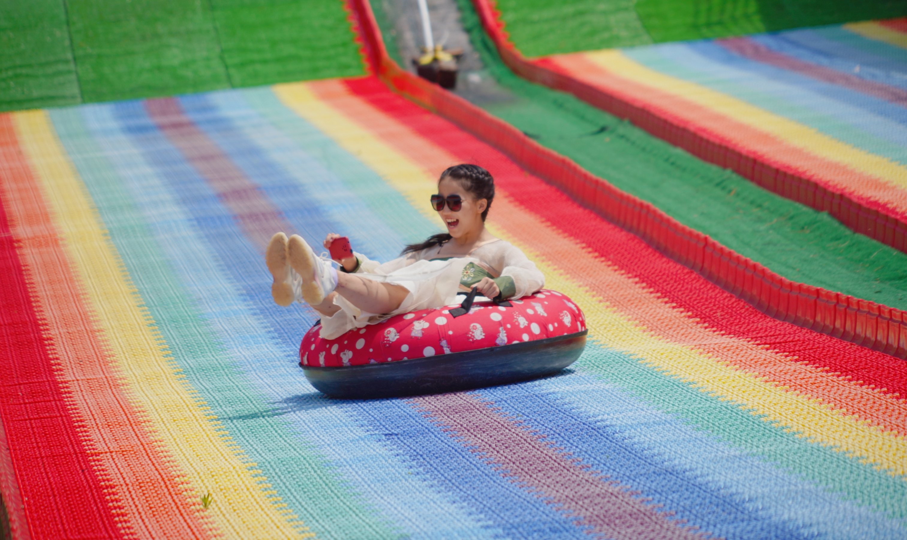 赤橙黄绿青蓝紫,谁将彩练,铺设滑道,两千五百平方米。