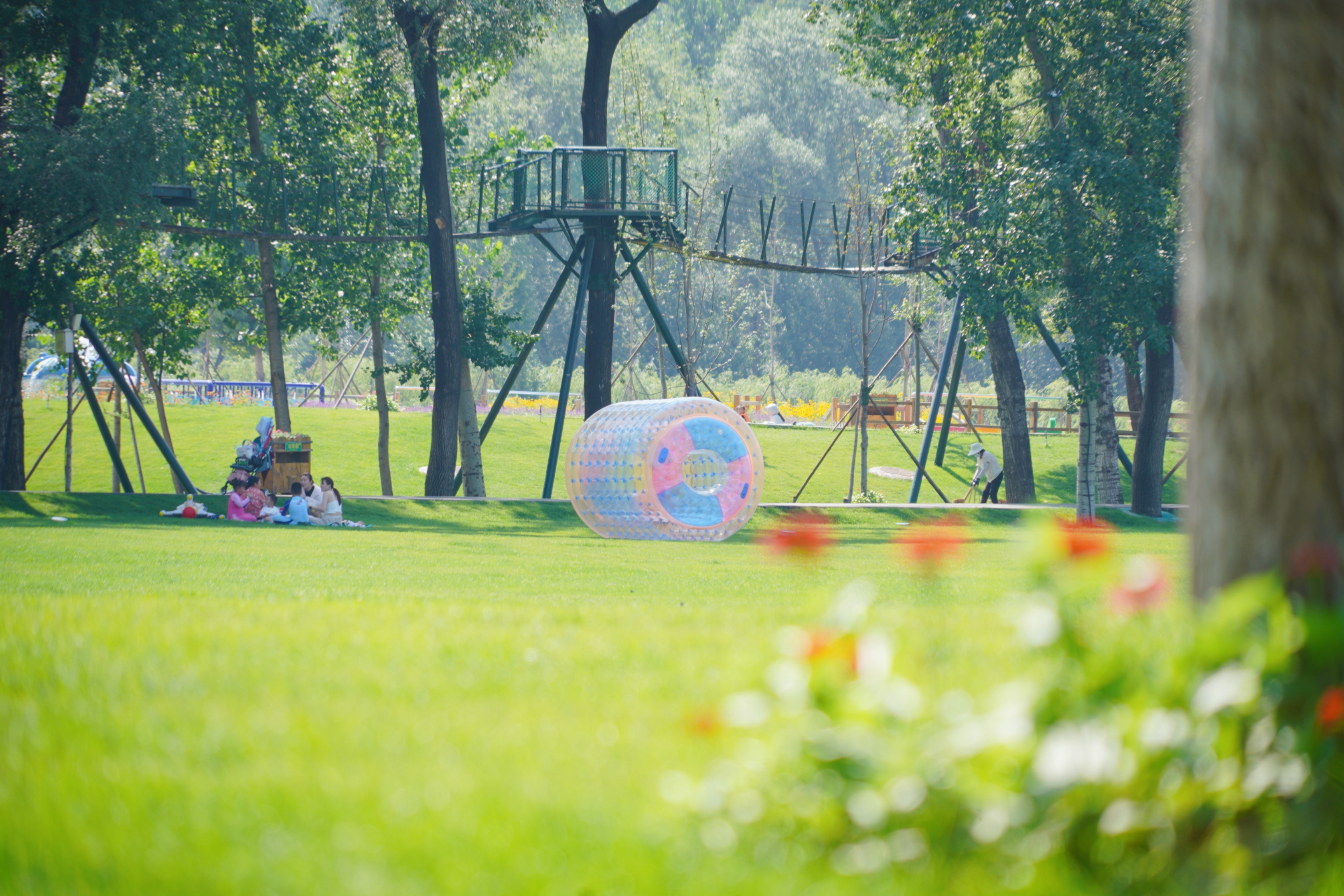 奇特桥架于树间,辗转环绕,六百多米,于半空中瞰公园。