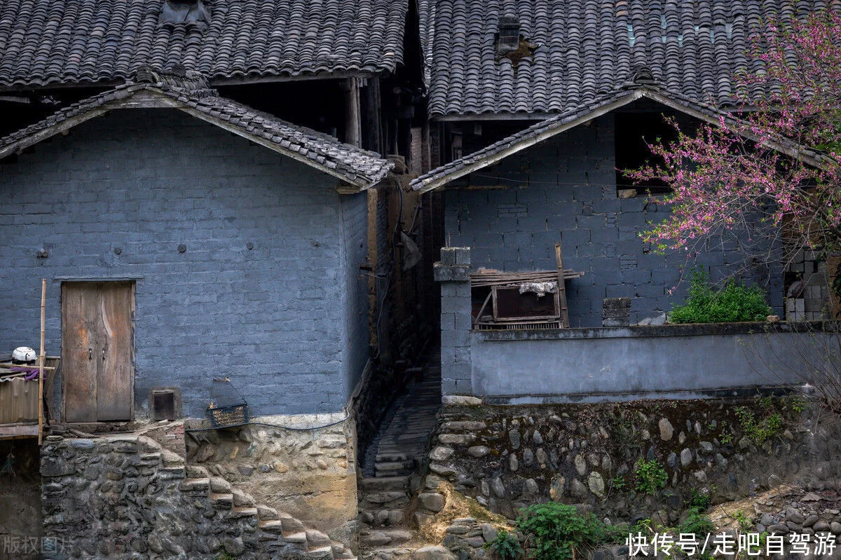 悠长蜿蜒青石路,家家户户,挂满腊肉,干净整洁古风俗。