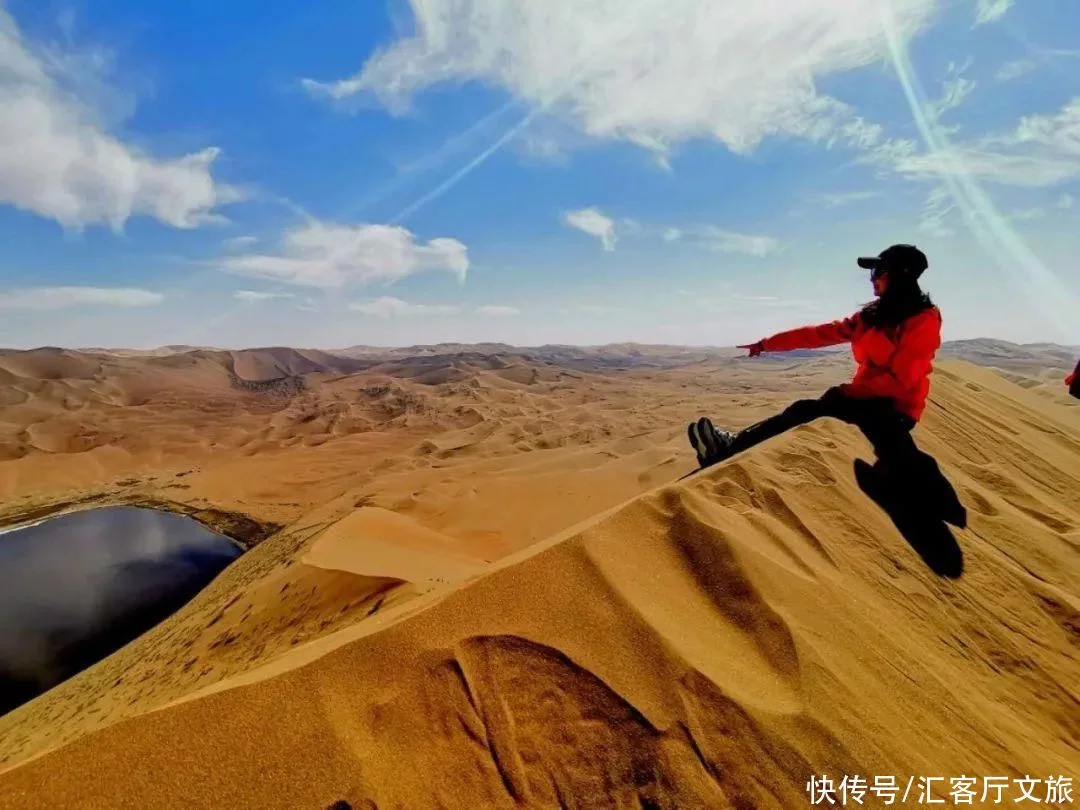 Spectacular sand mountain ups and downs, beautiful Haizi colorful water.