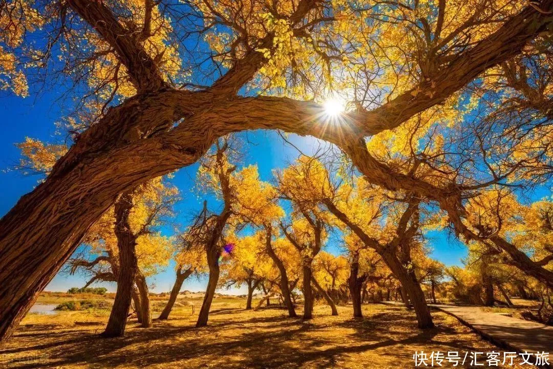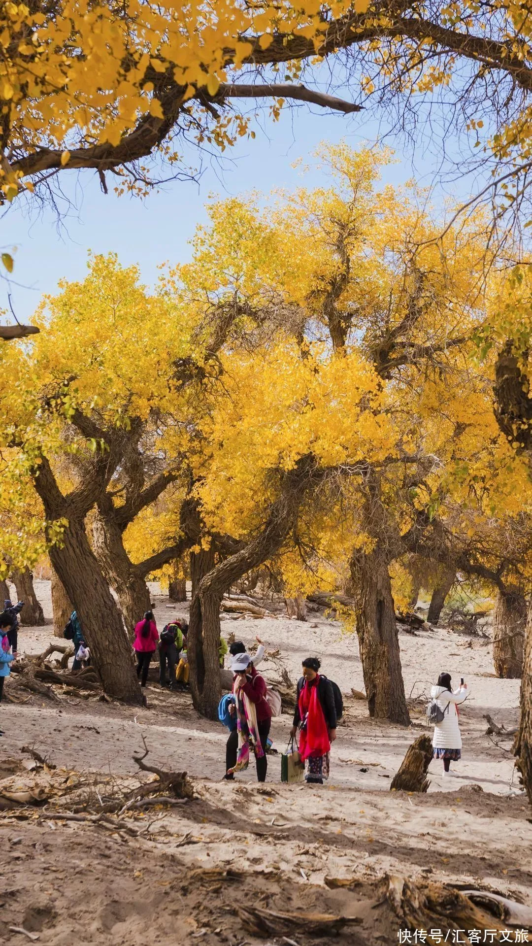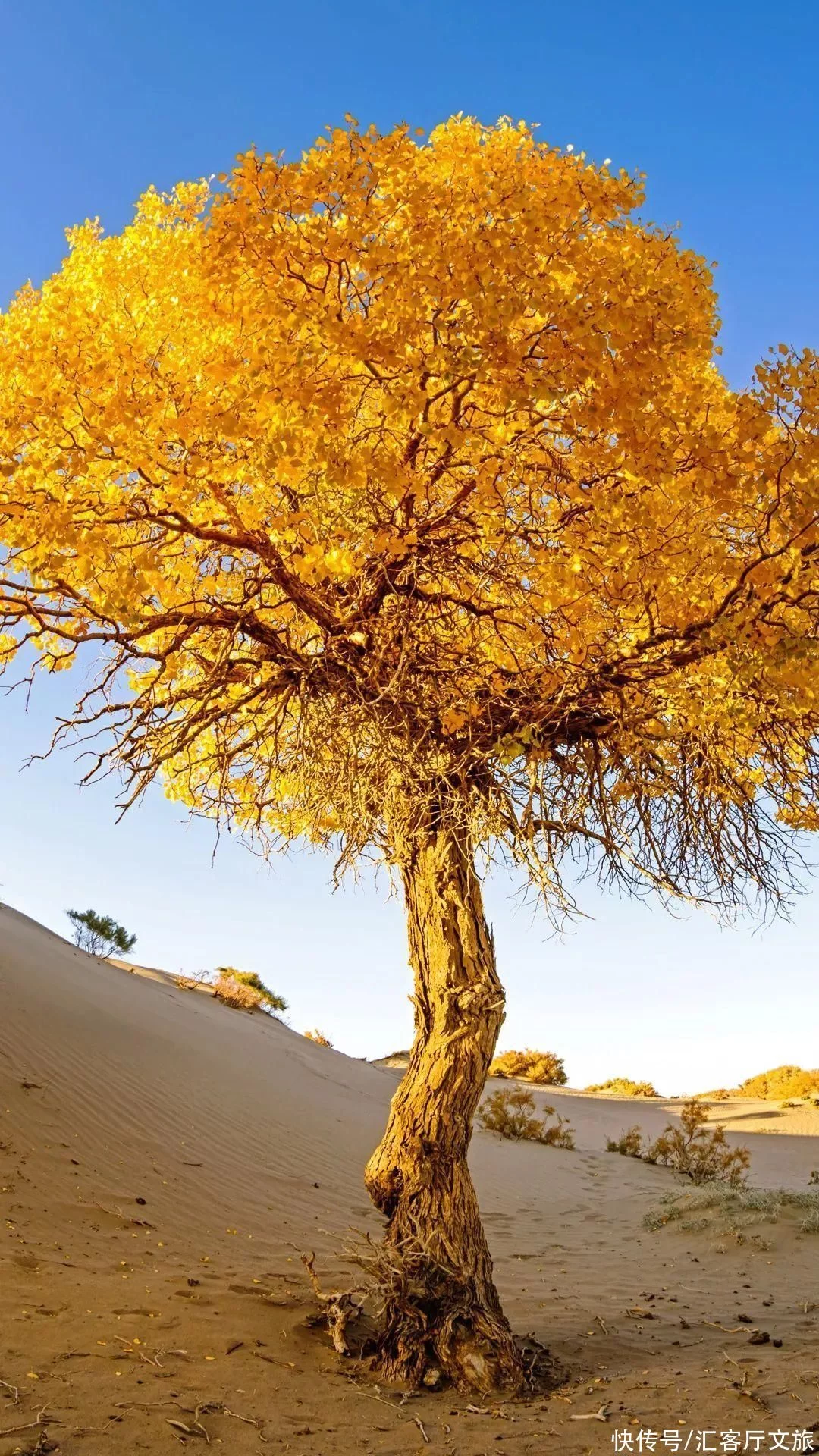 In Ejina, Xinjiang, poplar stands tall in the desert.