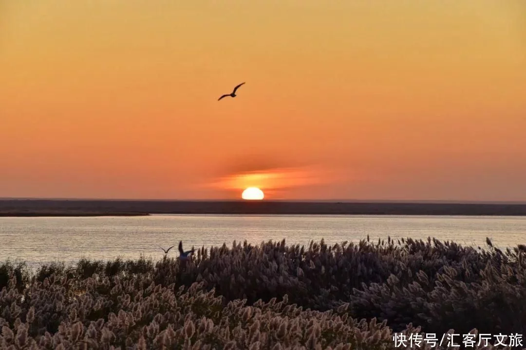 晨光洒在湖面上,湖边芦苇皆金裹。