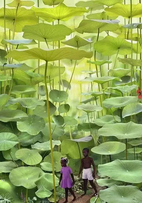 Huge lotus leaf when Luo umbrella, not afraid of the sun on the head.