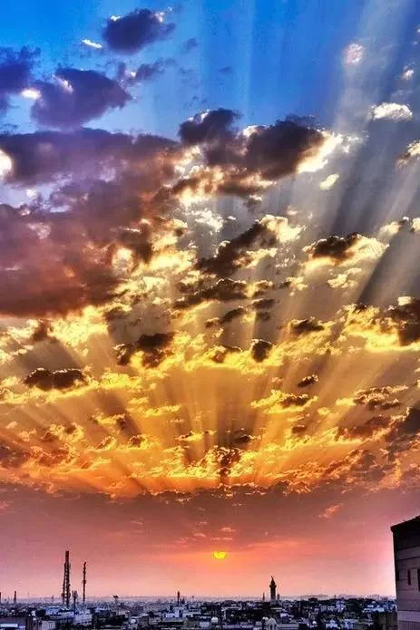 The beautiful picture was dotted with a warm sun shining on the blue sky.