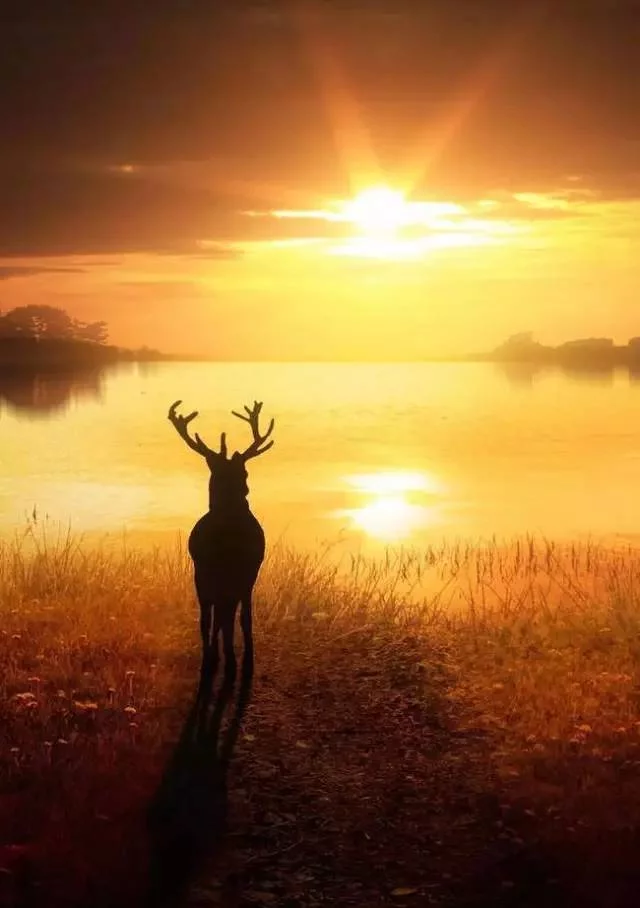 Waiting for the sunrise of the milu deer, quietly looking at the emerald Lake.