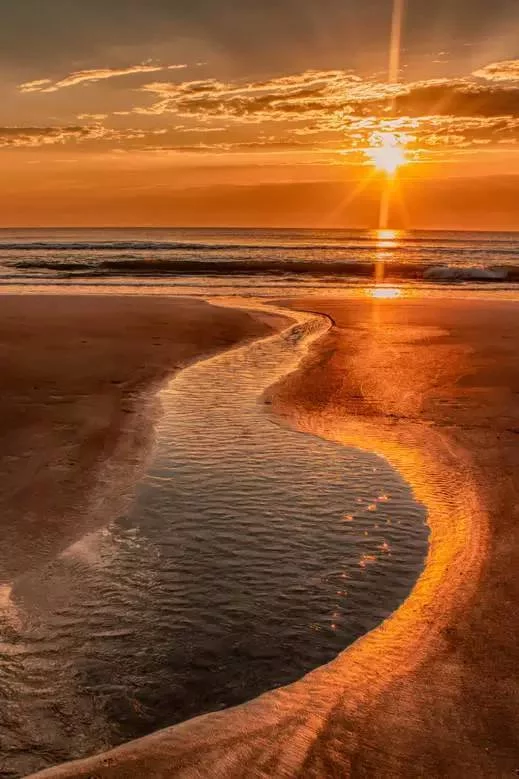 Cotton clouds below the setting sun, fluttering suddenly in the air.