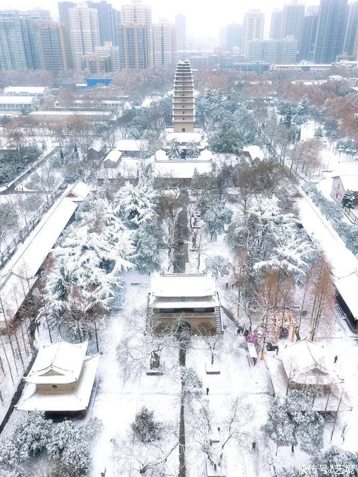 The beautiful Xi'an is decorated with snow, just like a classical painting.