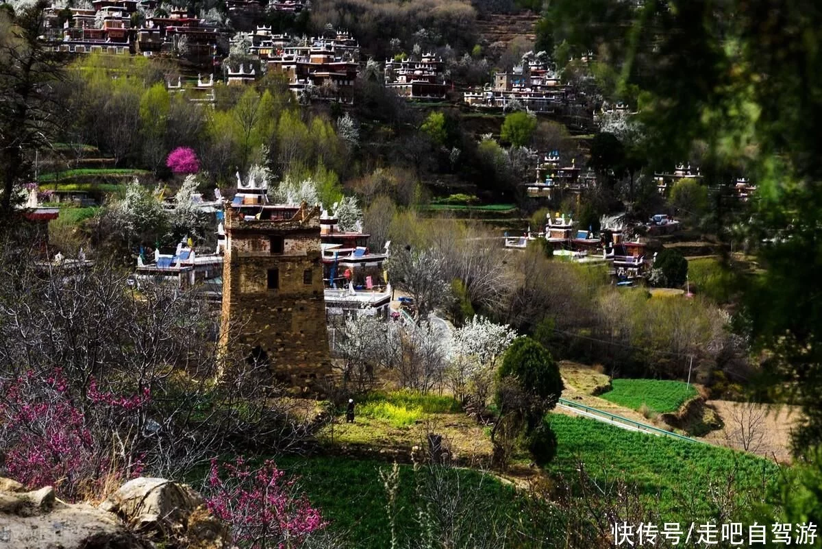 The blockhouse stands in the Tibetan village, which is both eye-catching and unique.