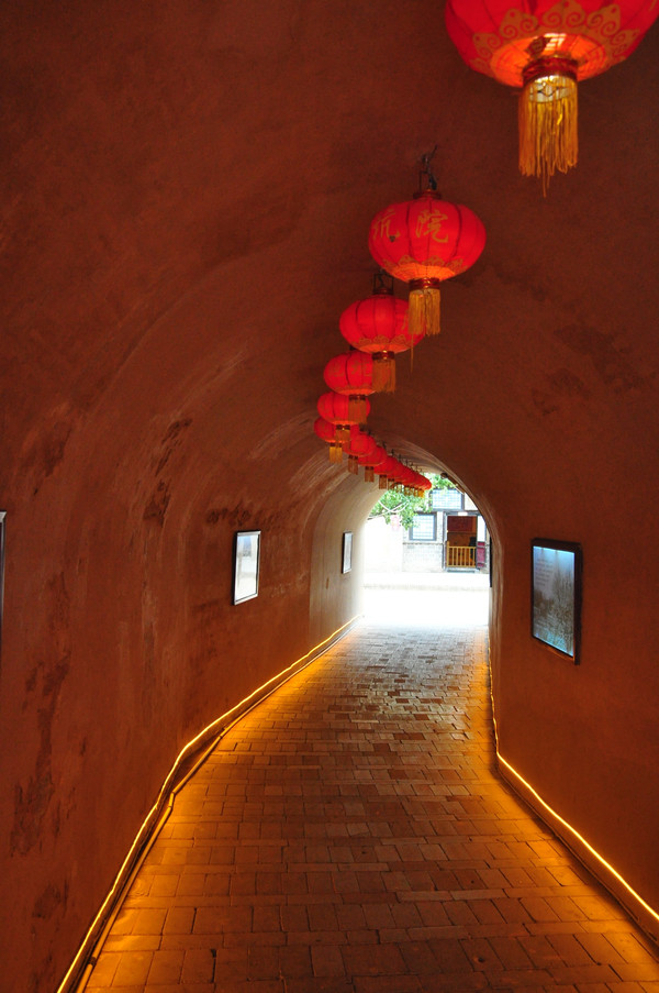 景区由入口进,沿着路标,走进一个一个院落,每一个院落都有一个主题,一直走到出口,整个地下景观即可看完,其中途中有几个出入口可至地面,地面上是一个个远近不等的下沉式天井,可以俯瞰井下的院落,的确别有情趣。