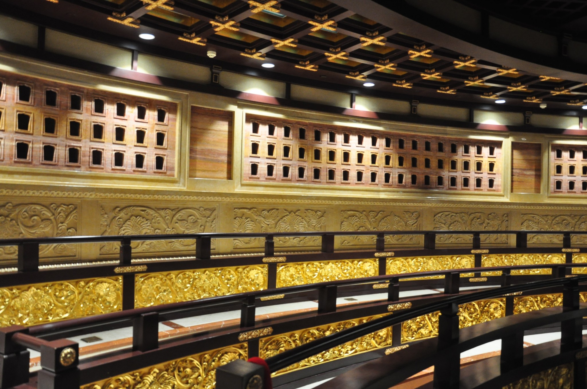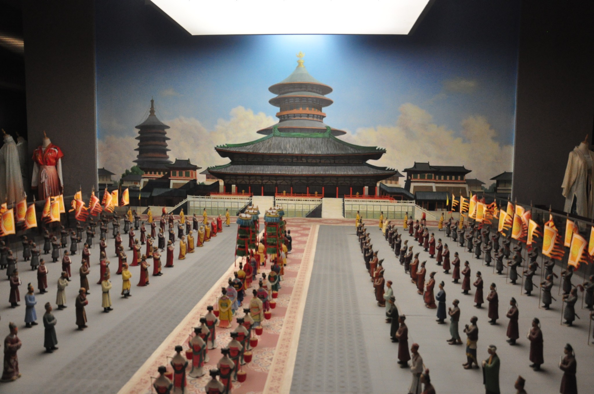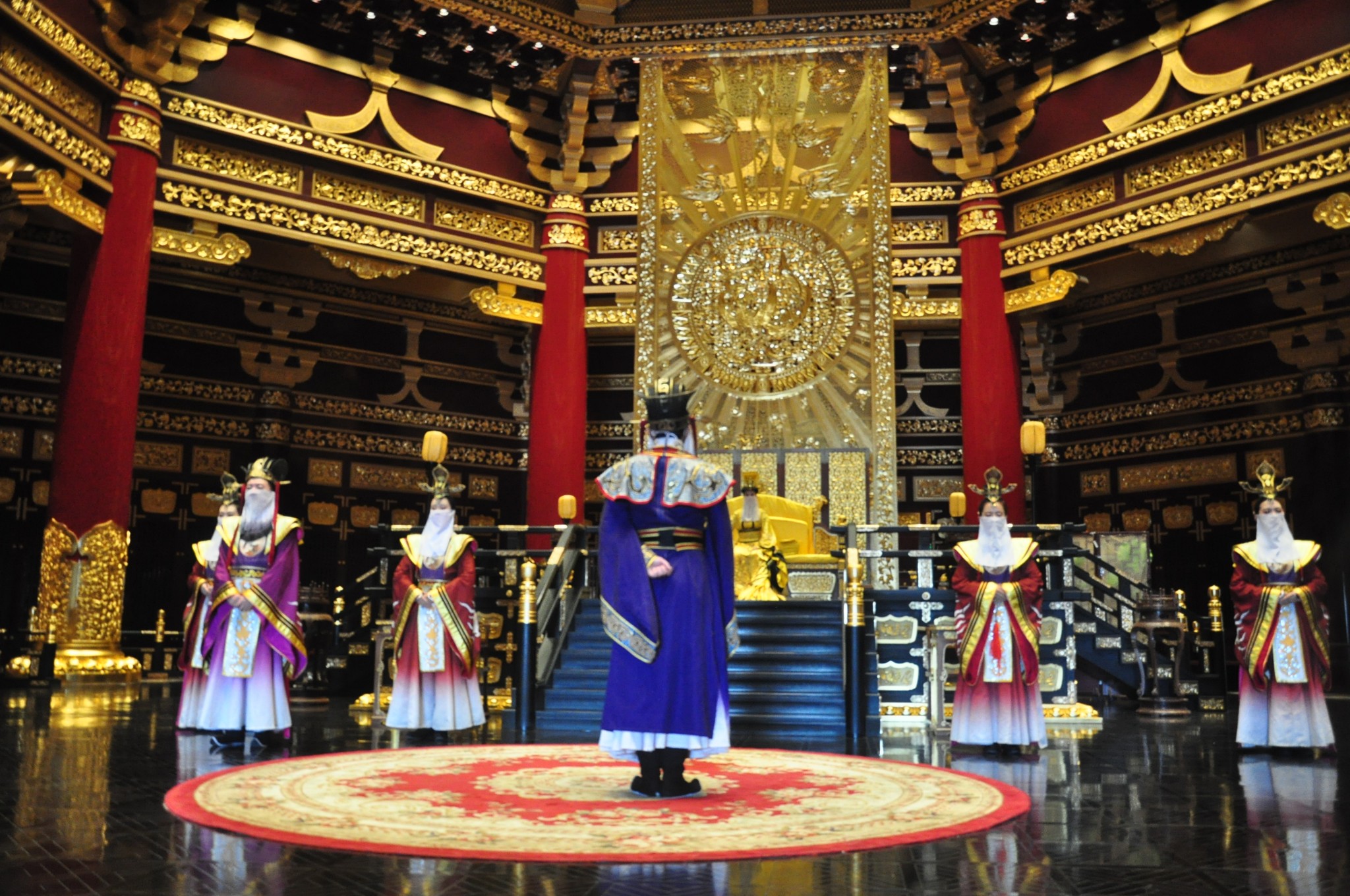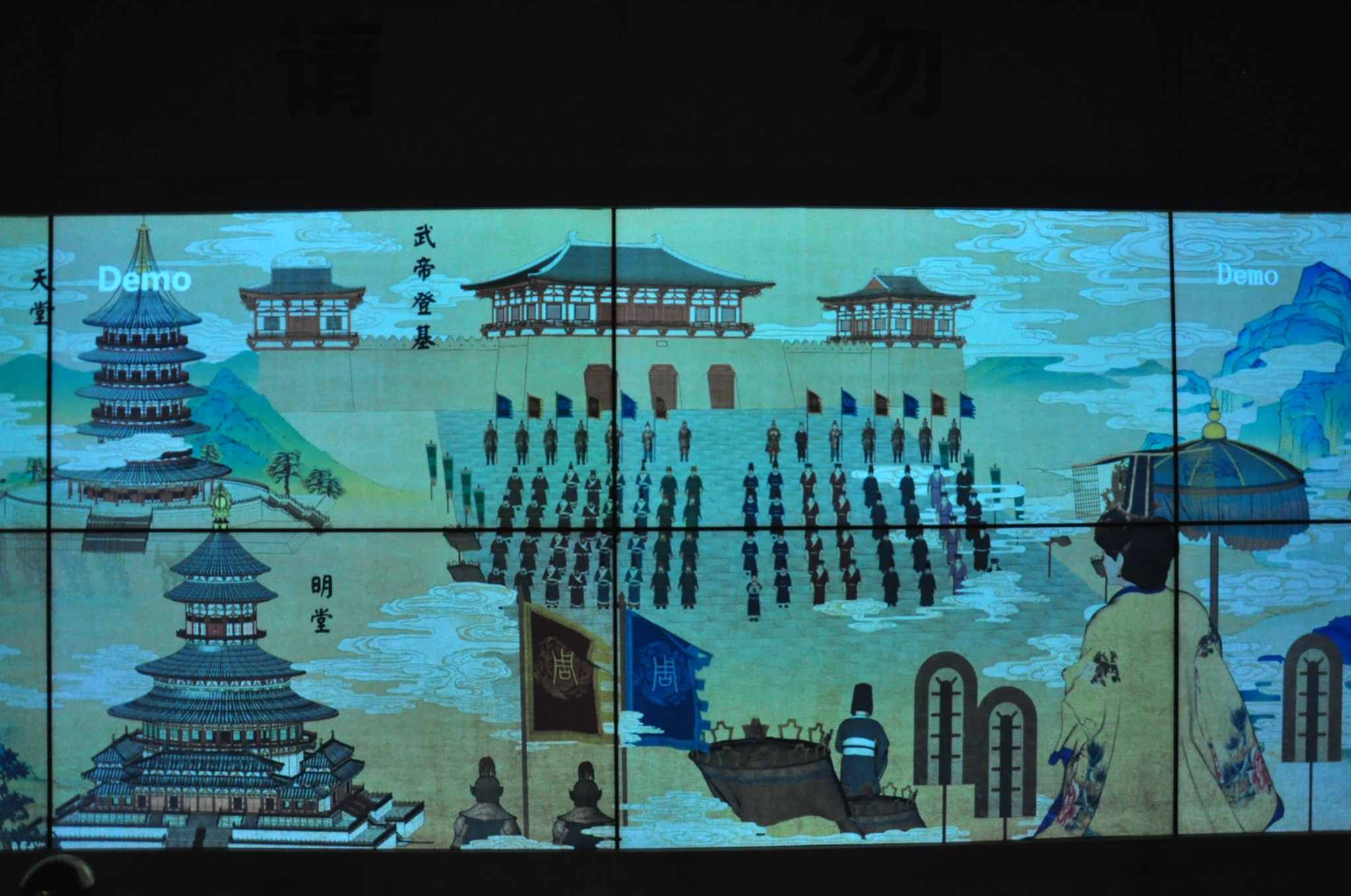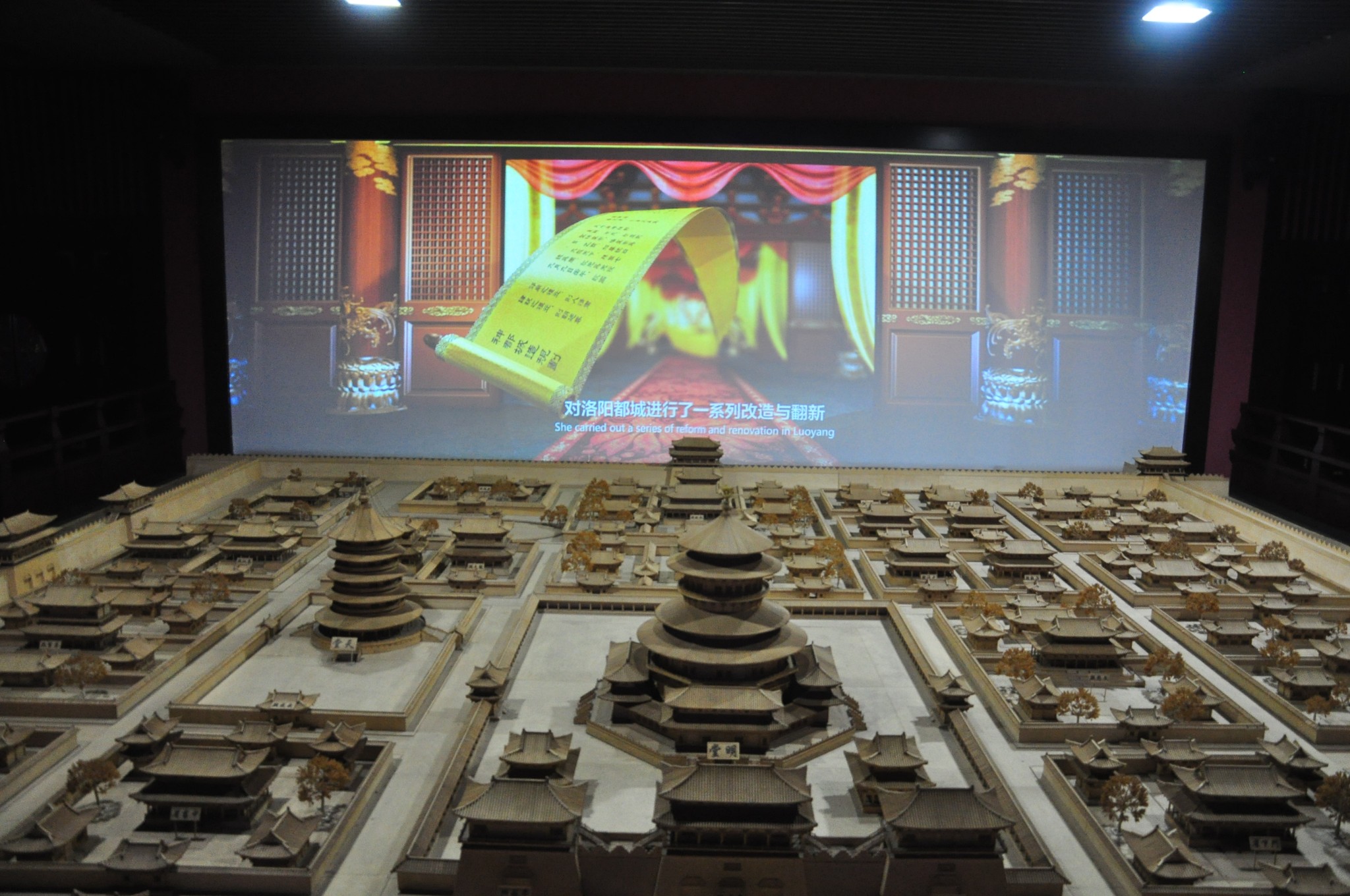 进入景区,正对着就是明堂宏伟的建筑,虽然是重建的殿堂,依然是金碧辉煌。明堂遗址高科技展示区让我们亲身体验时光倒流,穿越回大唐盛世,感受万象神宫的震憾。在一层的弧幕影院里,通过长卷折幕我们将看到围绕明堂的人文故事,祭祀,庙会,庆典等活动,透过明堂让我了解大唐的人文风情。