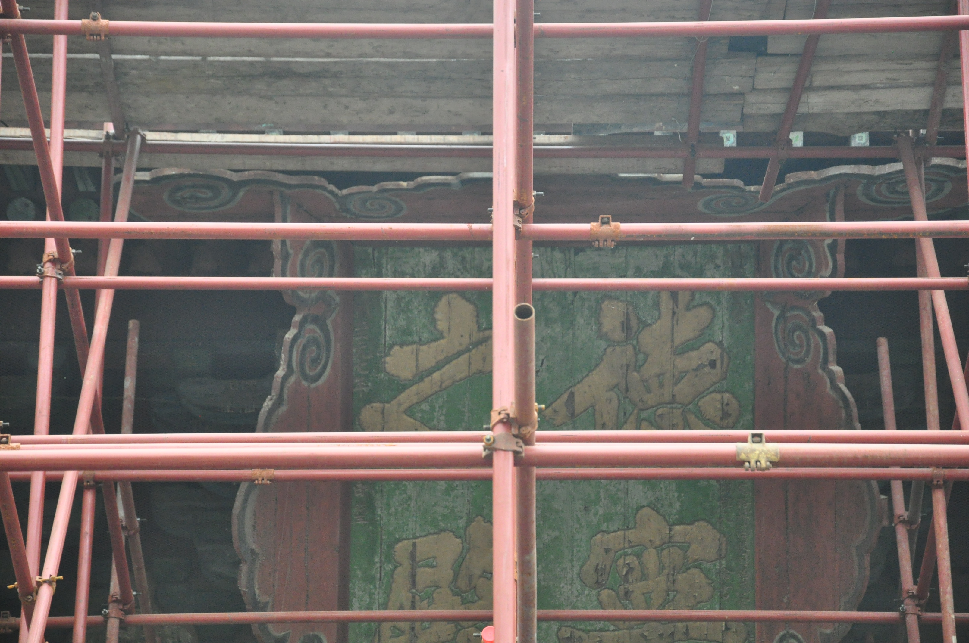 不过令人遗憾的是,当下北岳庙正在整修,几座主要建筑都被围栏遮挡,无法拍照,还好,里面的壁画和塑像还可参观,算是没有白来一趟。