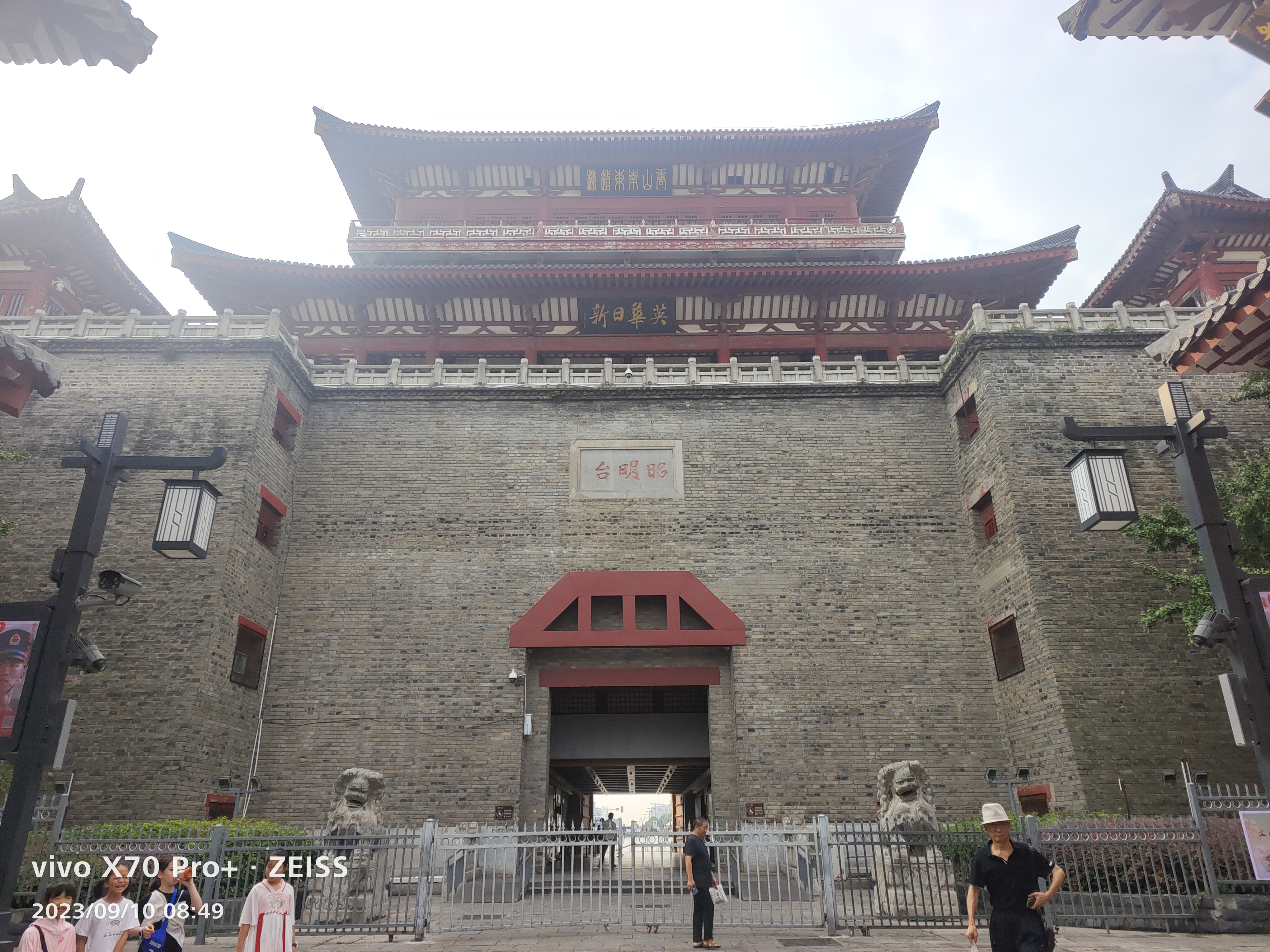 上午8点40分到博物馆,就是襄阳昭明台。襄阳古城昭明台也称钟鼓楼,为襄阳古城标志性仿古建筑。为纪念南朝梁昭明太子萧统而建。根据历史记载:“楼在郡治中央,高三层,面南,翼以钟鼓,为方城胜迹。” 1990年在考证昭明台1000多年历史的基础上,重建昭明台。