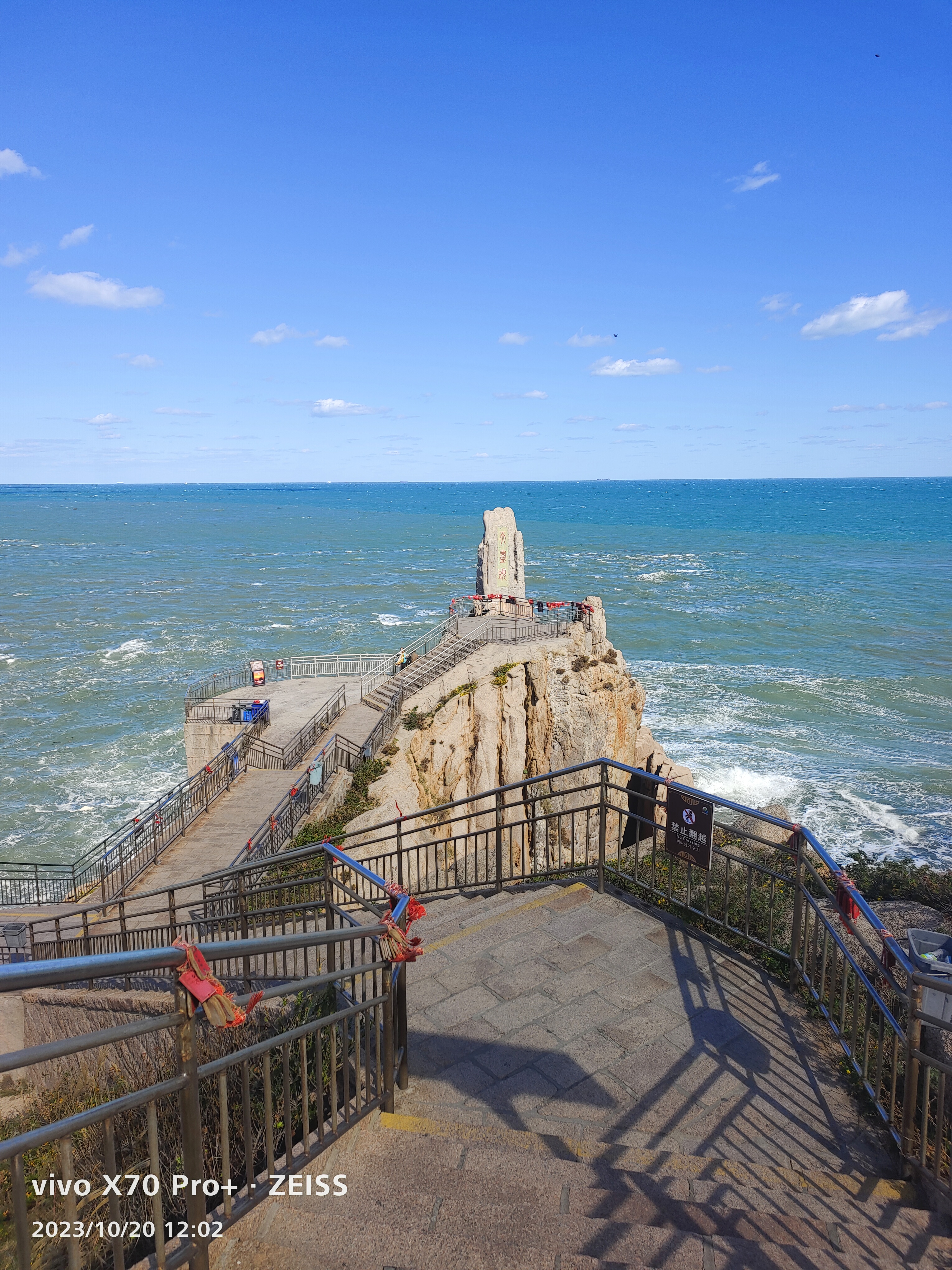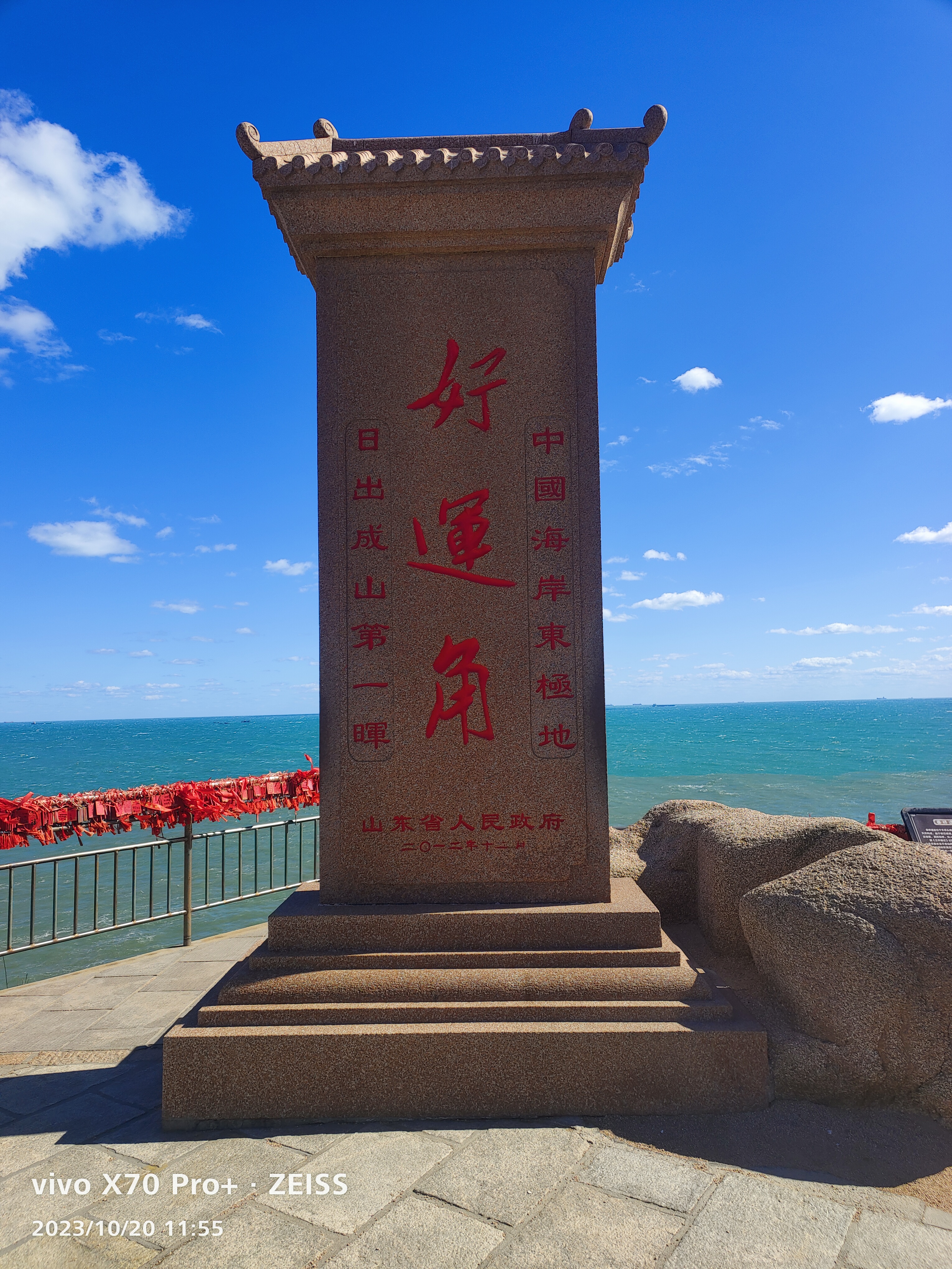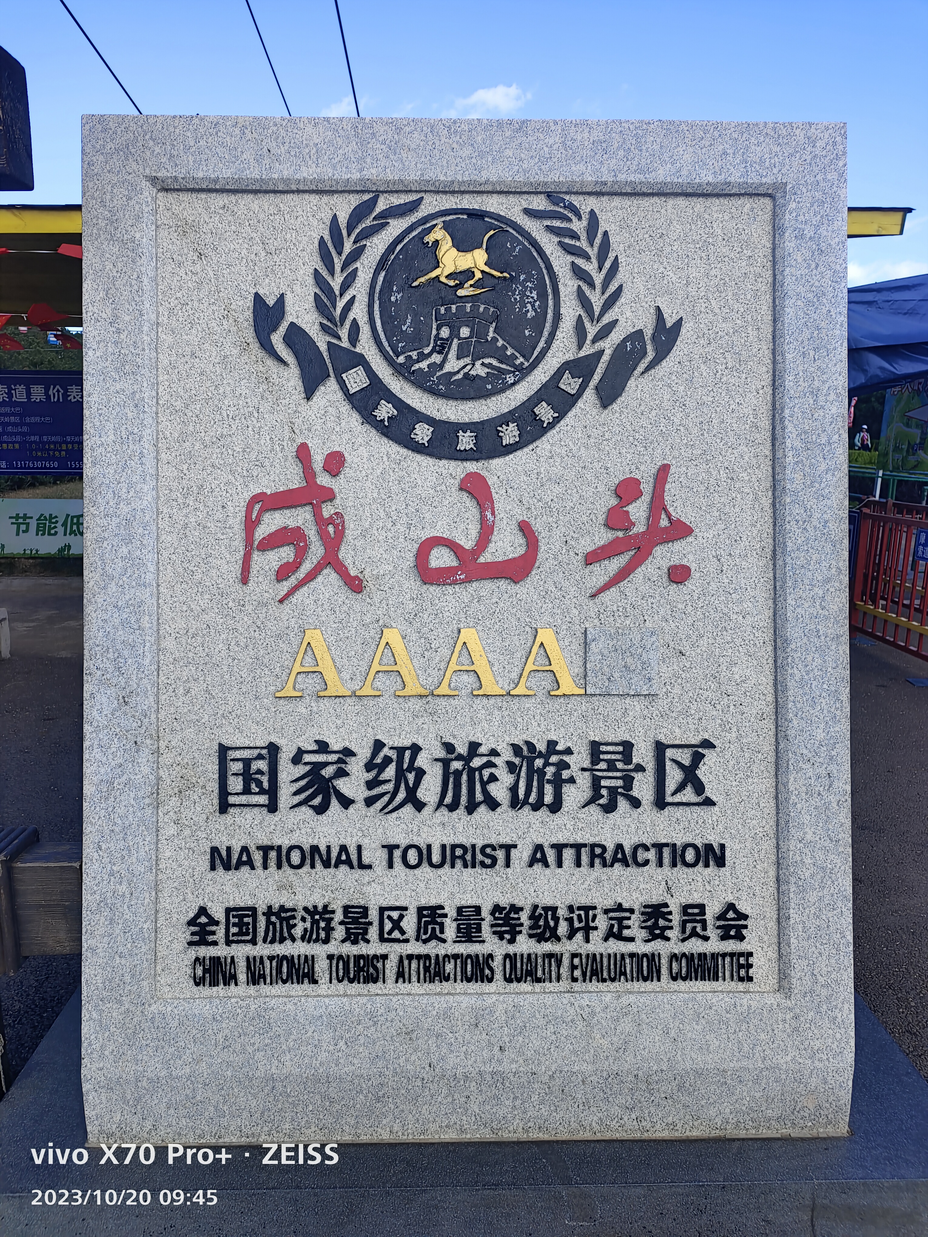 2023年10月20日早晨在酒店吃过自助早餐,8点10分在蒿泊南站乘城际公交4号线,此线路是成山头景区的专线车,其终点站就是成山头景区,到景区票价14元。我们9点半到达成山头景区游客中心,在此购买门票,全票148元,半票每人74元。除门票外,还可以购买缆车票或者观光车往返票,我们都没有购买,后来看,我们的决策还是对的,因为当我们依序看完所有的景点,直接从东天门出,可以在此乘公交返回威海,没必要再乘车返回景区大门,多此一举,还浪费时间和银两。