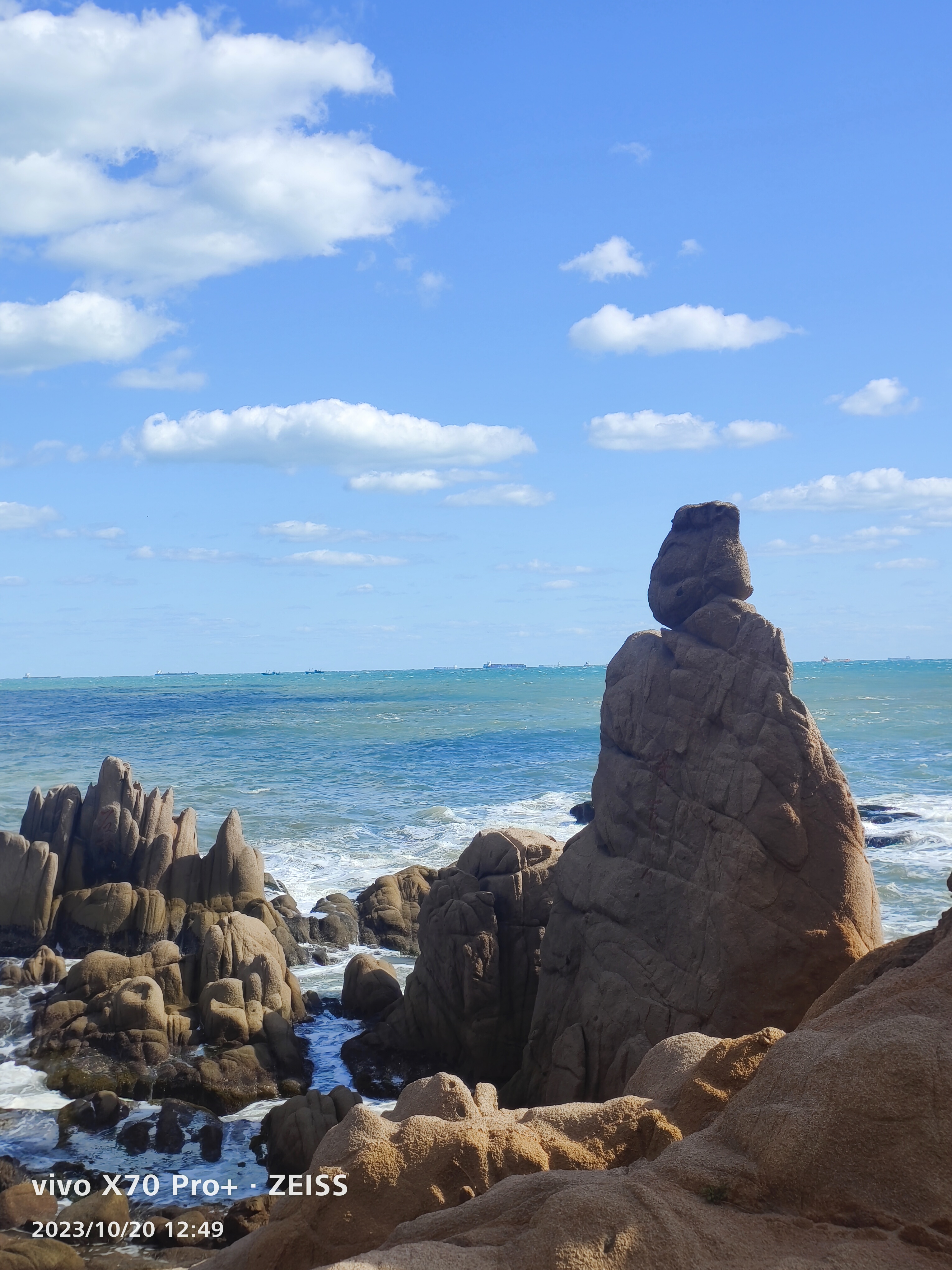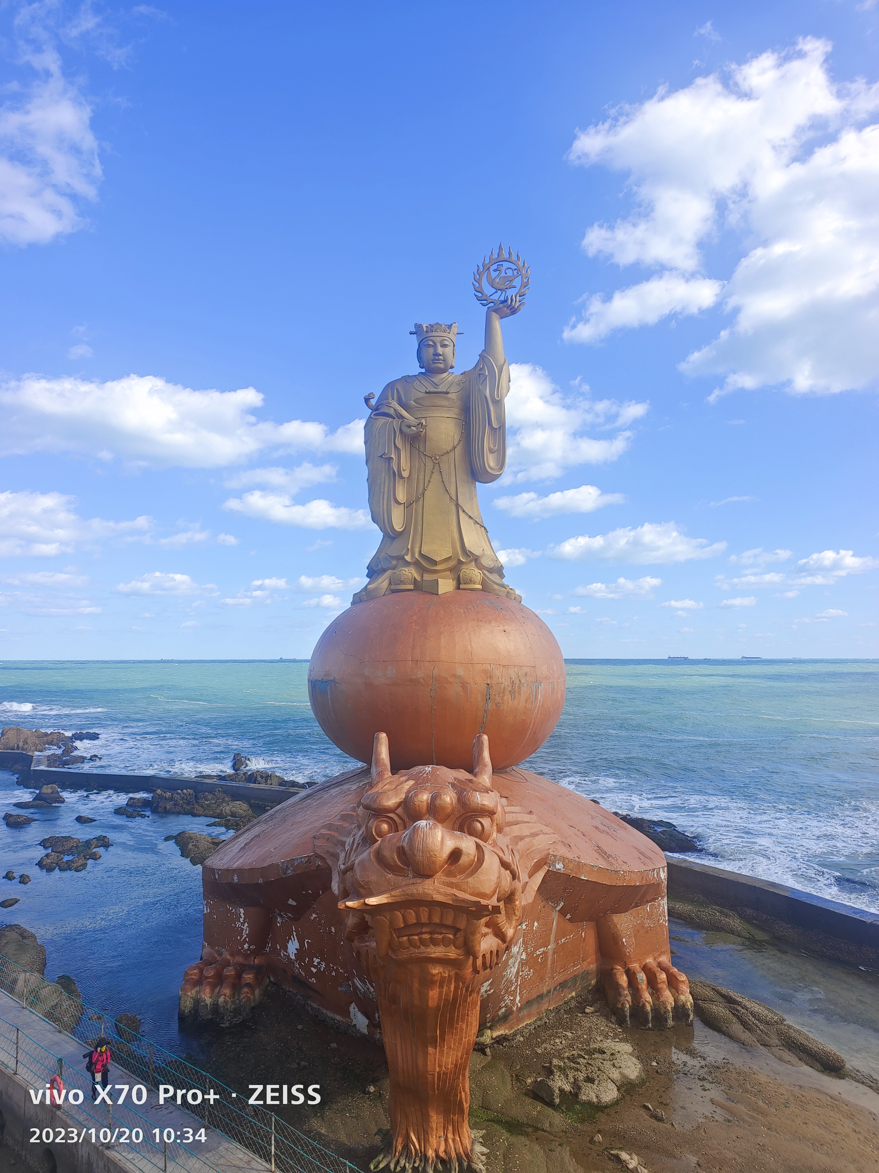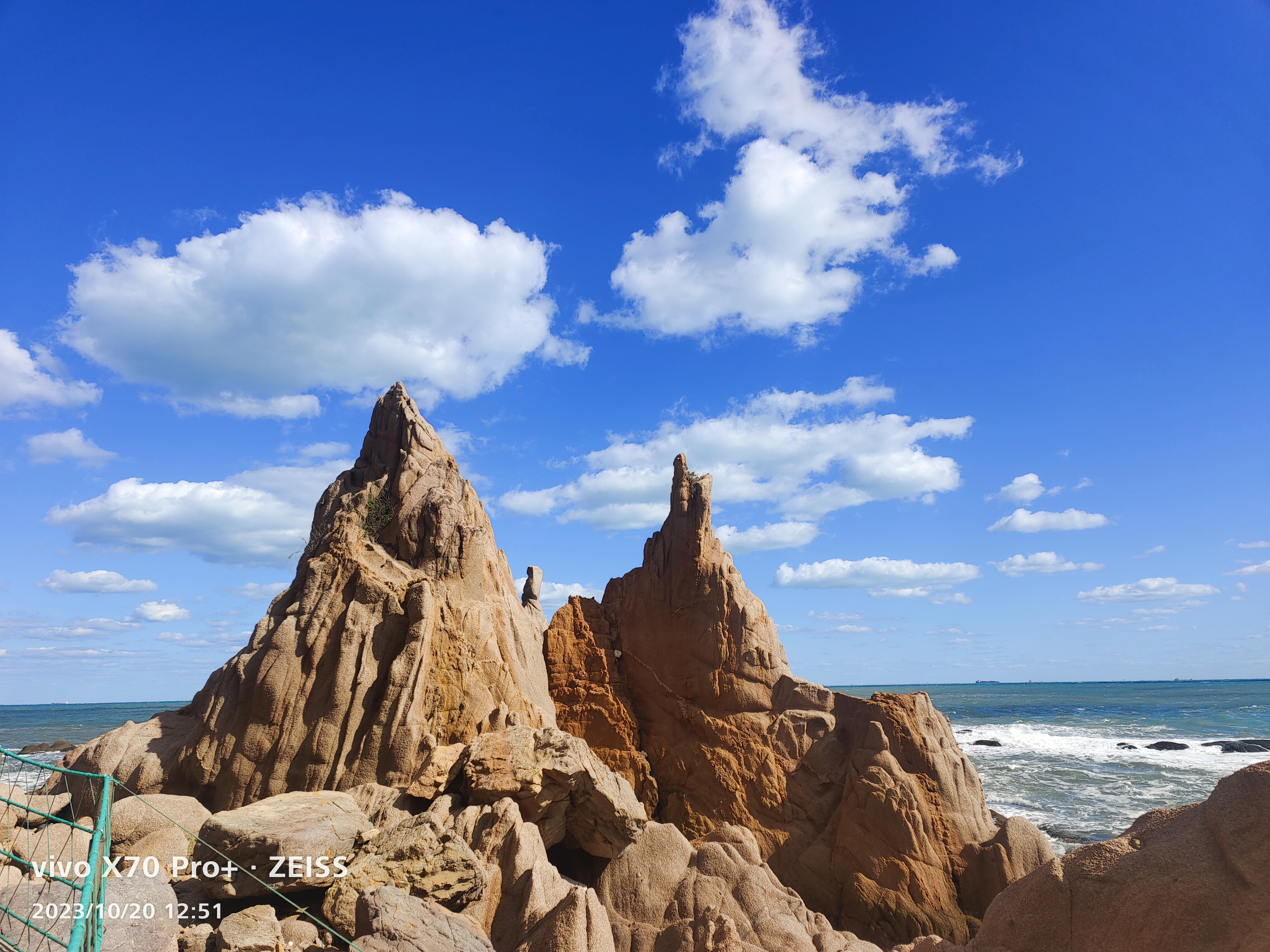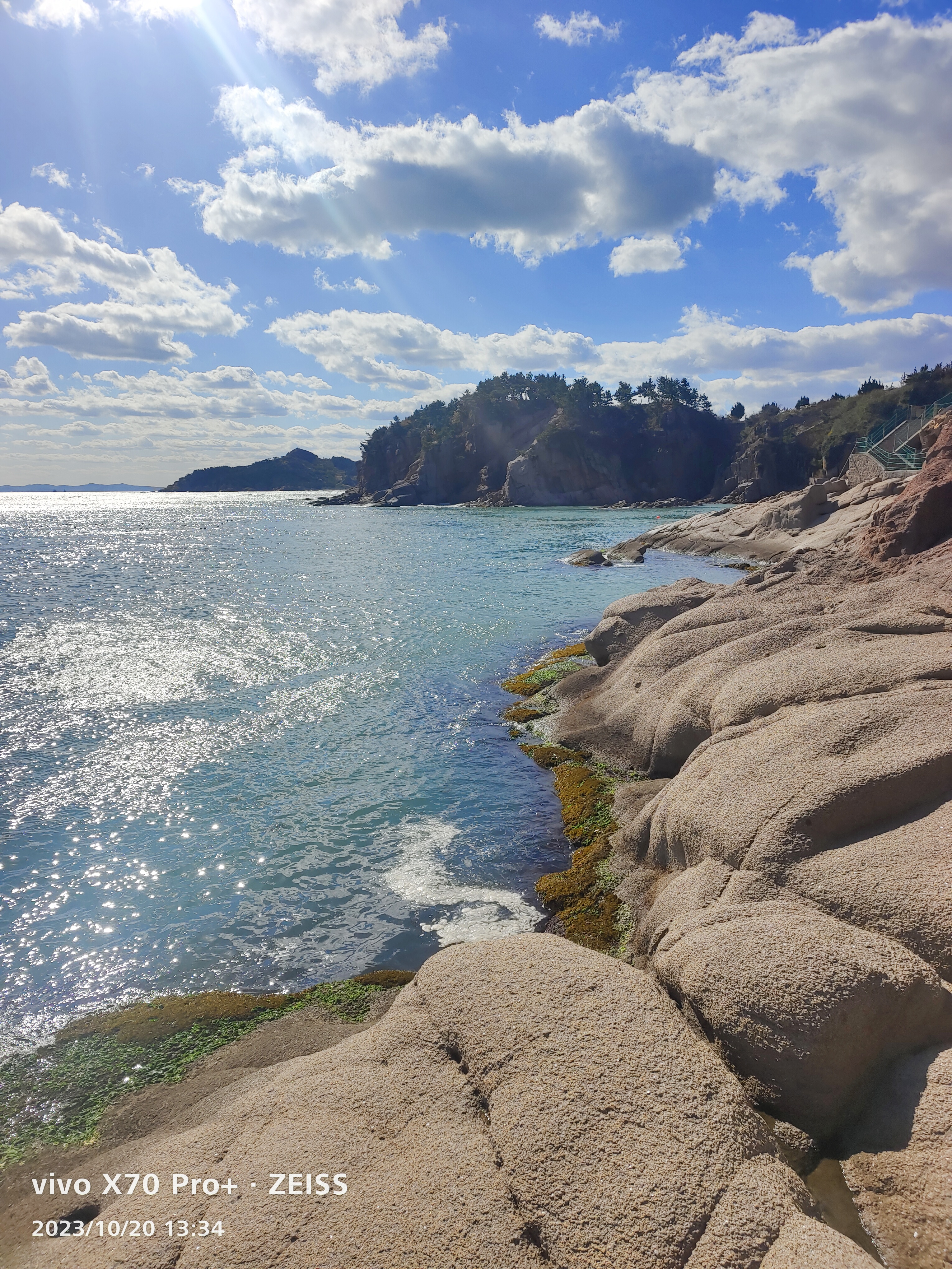 2023年10月20日早晨在酒店吃过自助早餐,8点10分在蒿泊南站乘城际公交4号线,此线路是成山头景区的专线车,其终点站就是成山头景区,到景区票价14元。我们9点半到达成山头景区游客中心,在此购买门票,全票148元,半票每人74元。除门票外,还可以购买缆车票或者观光车往返票,我们都没有购买,后来看,我们的决策还是对的,因为当我们依序看完所有的景点,直接从东天门出,可以在此乘公交返回威海,没必要再乘车返回景区大门,多此一举,还浪费时间和银两。