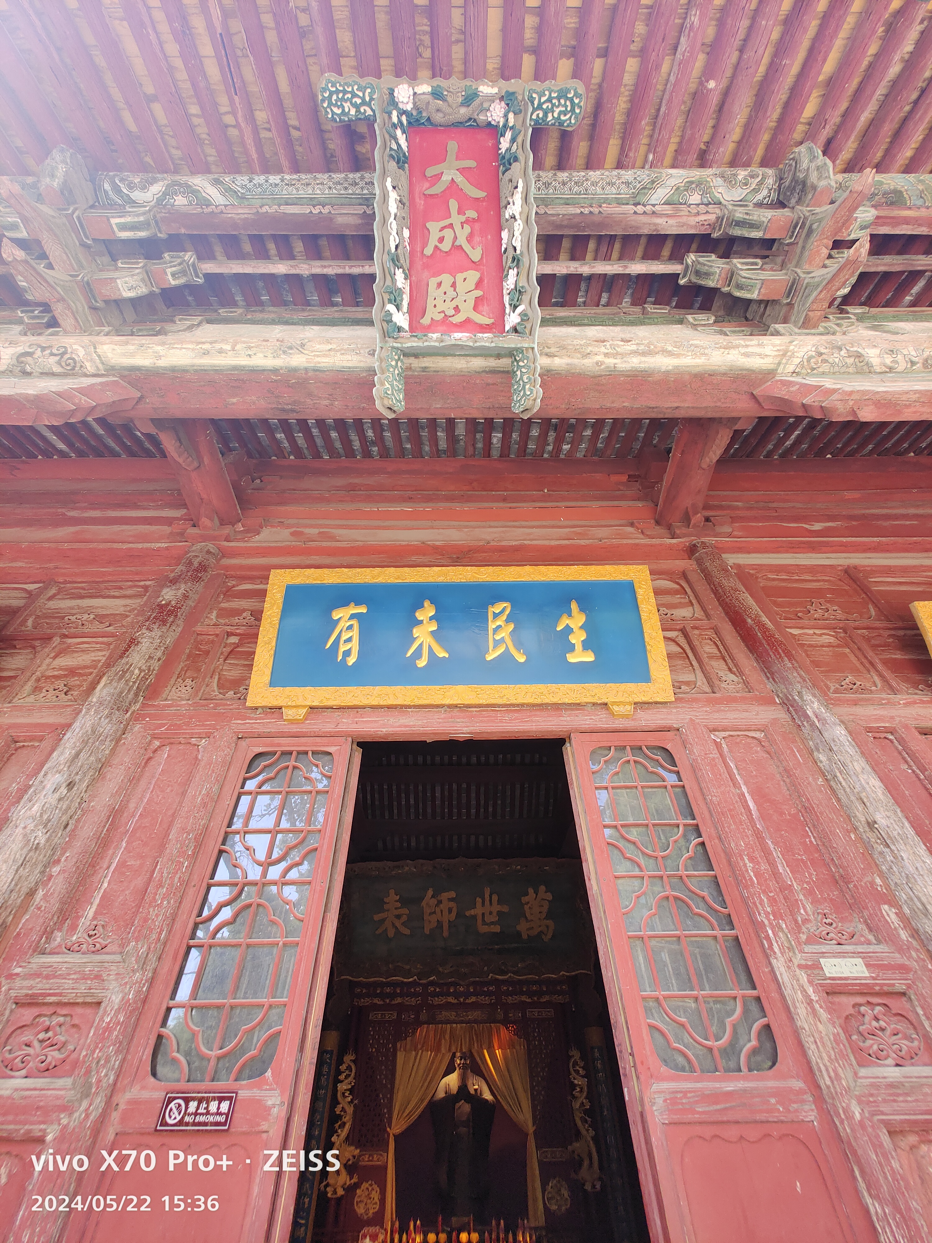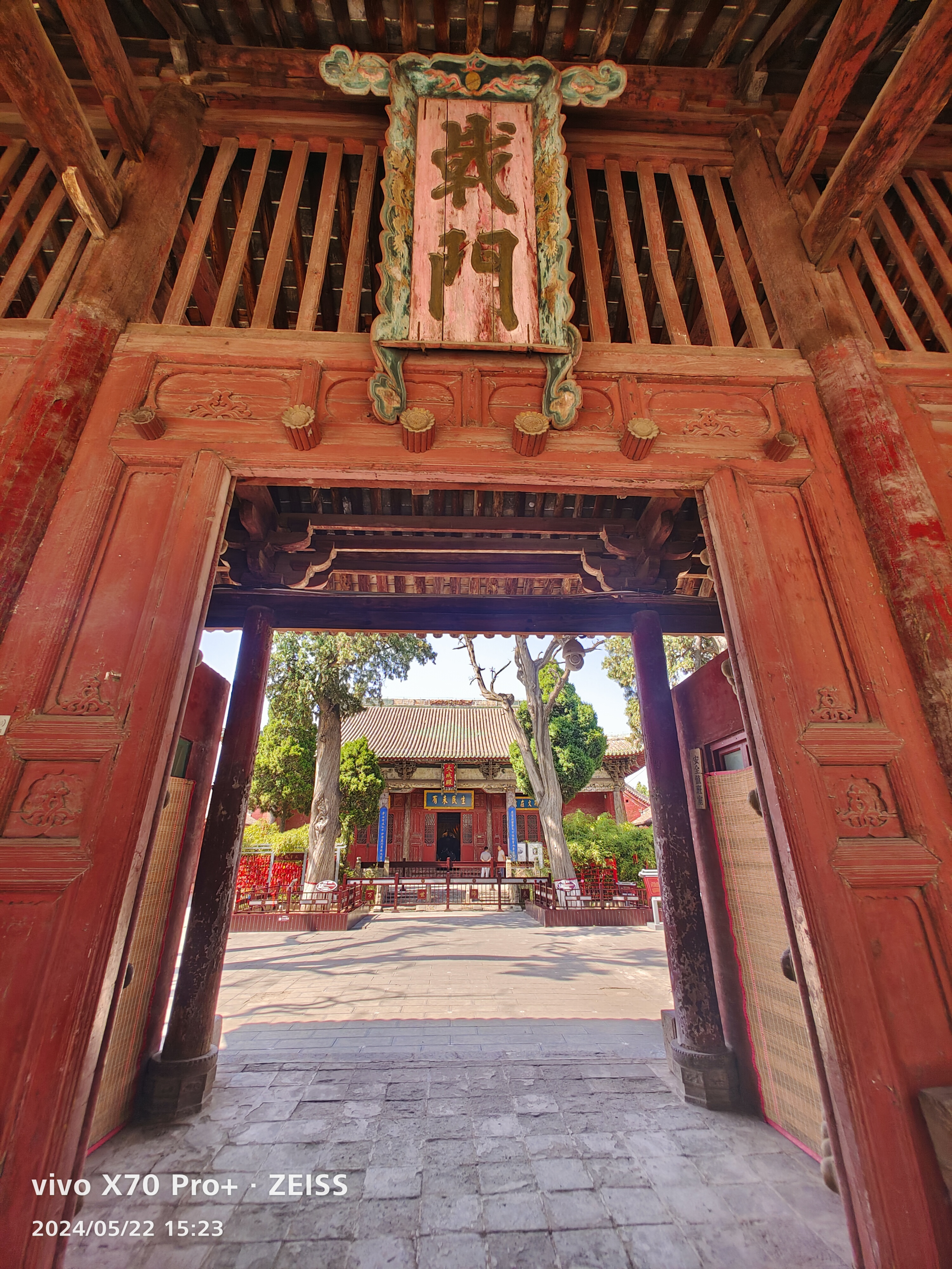 2024年5月22日早餐在酒店吃过早餐,我独自步行前往小雁塔景区,景区距酒店很近,上午离开西安还有一些时间,也只能在此流连片刻。小雁塔我们也来过,西安博物馆就在景区内,只能在附近随便走走,算作休闲。上午9点半返回酒店,收拾行李退房,坐地铁10点到西安火车站,乘中午11点15分c168次列车前往韩城,下午1点半到达韩城,入住距韩城火车站不远的如家酒店。途中解决了午餐,安顿好住宿,下午2点50分我们在酒店门口乘旅游观光巴士到韩城文庙下车,这里就是韩城古城景区的核心区域。