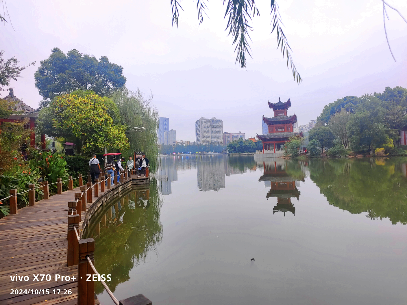 2024年10月14日晚8点44分我们乘k1159次列车前往湖南郴州,开始我们此次重点广西的行程。途径郴州打算去高椅岭,以前曾经错过的景点。第二天,10月15日下午3点44分到达郴州火车站,出站乘14路公交到友阿国际广场下,入住城市便捷酒店。安排就绪,已经下午4点多,赶巧入住酒店就在郴州北湖公园附近,索性先逛逛公园便是。