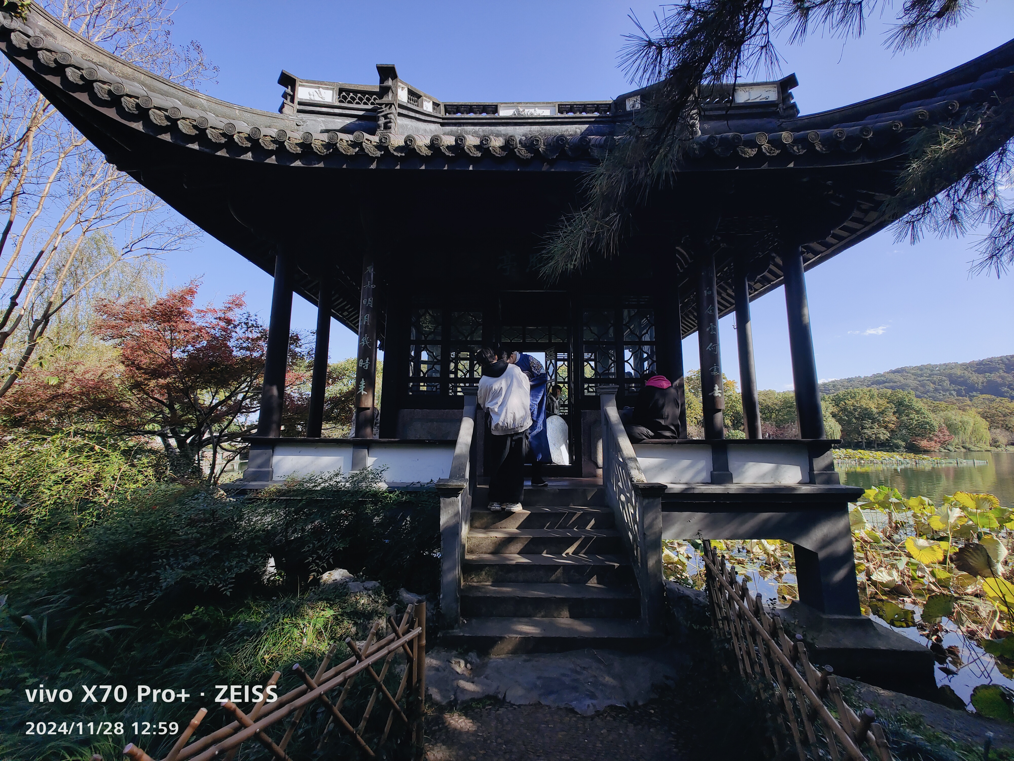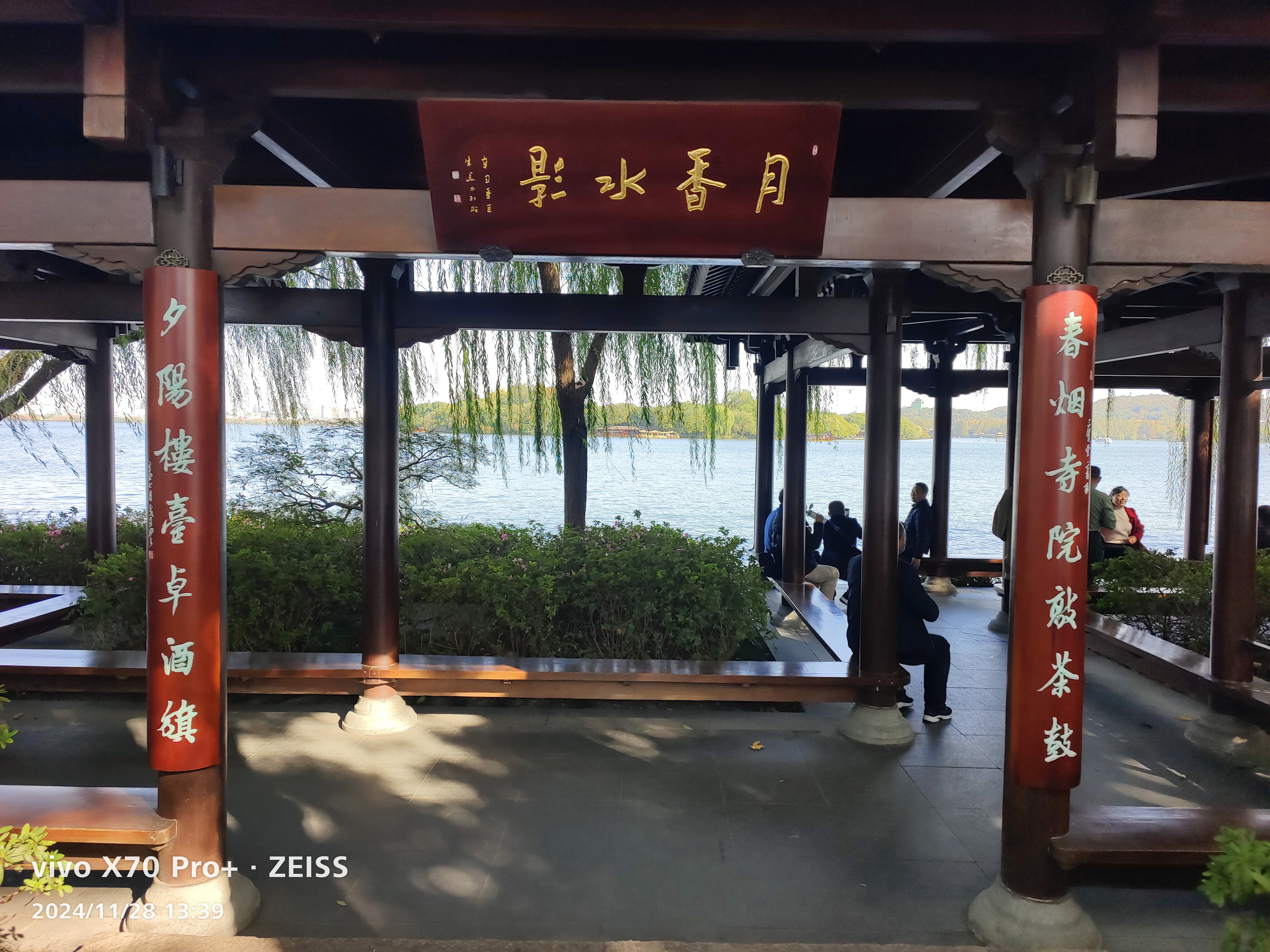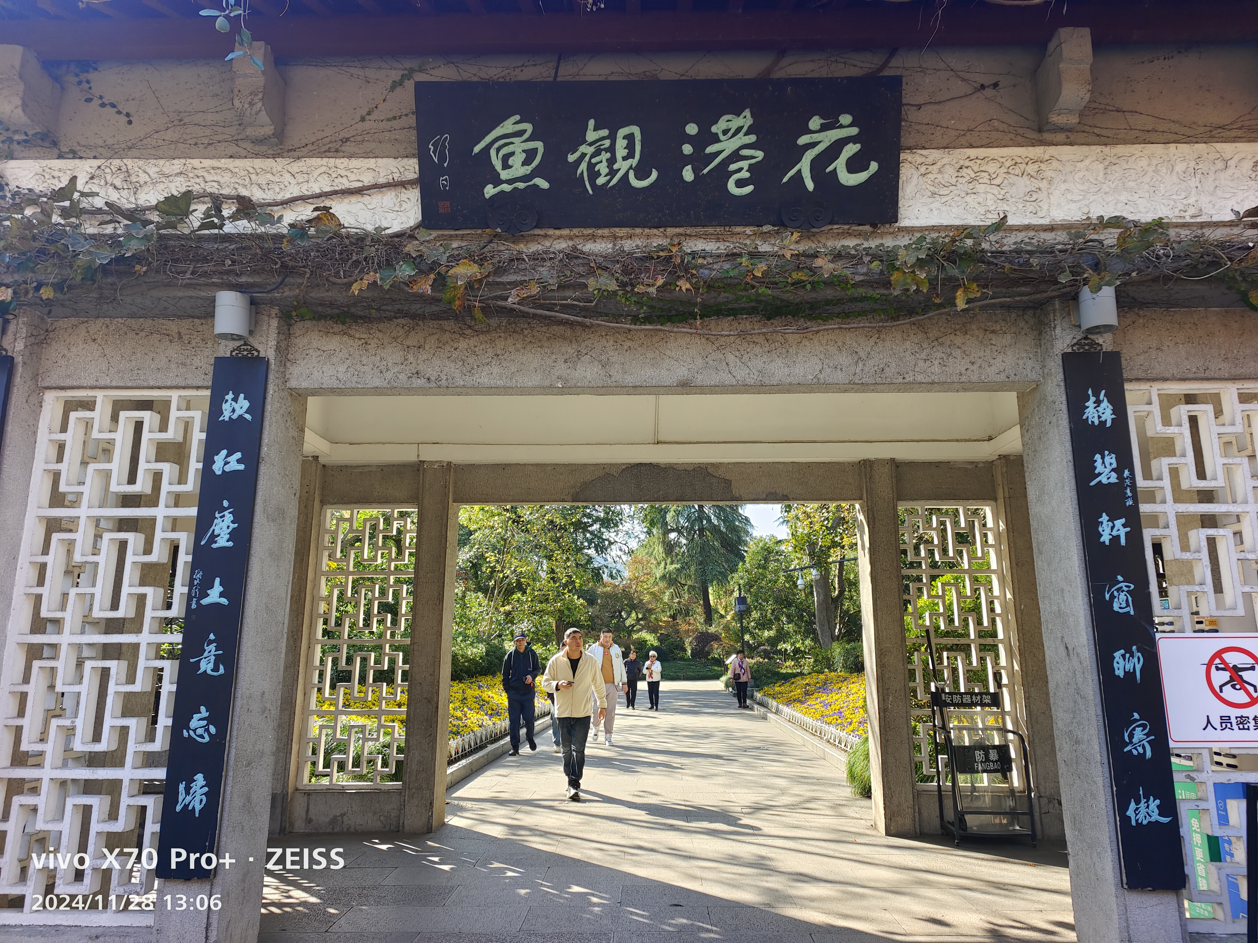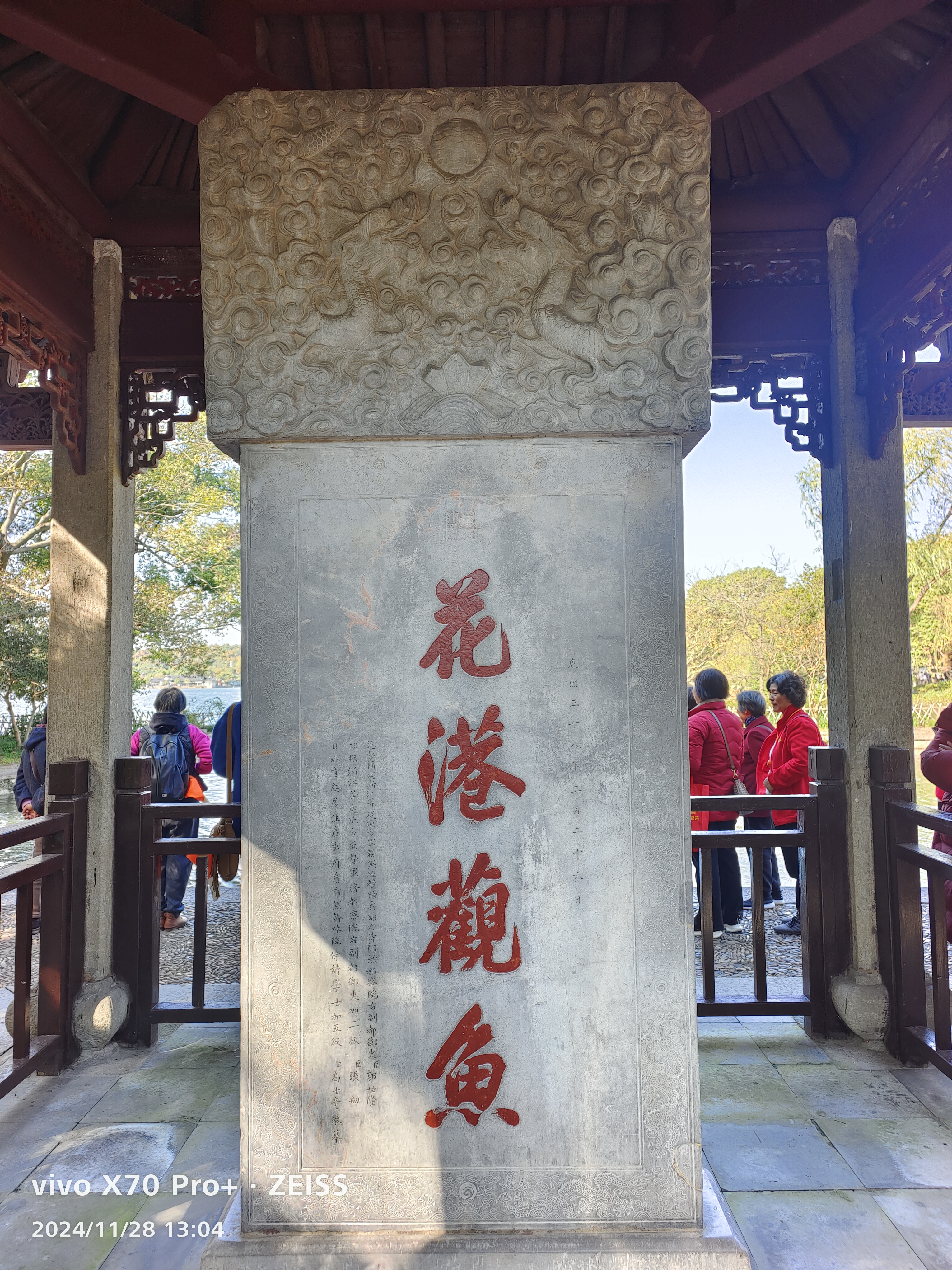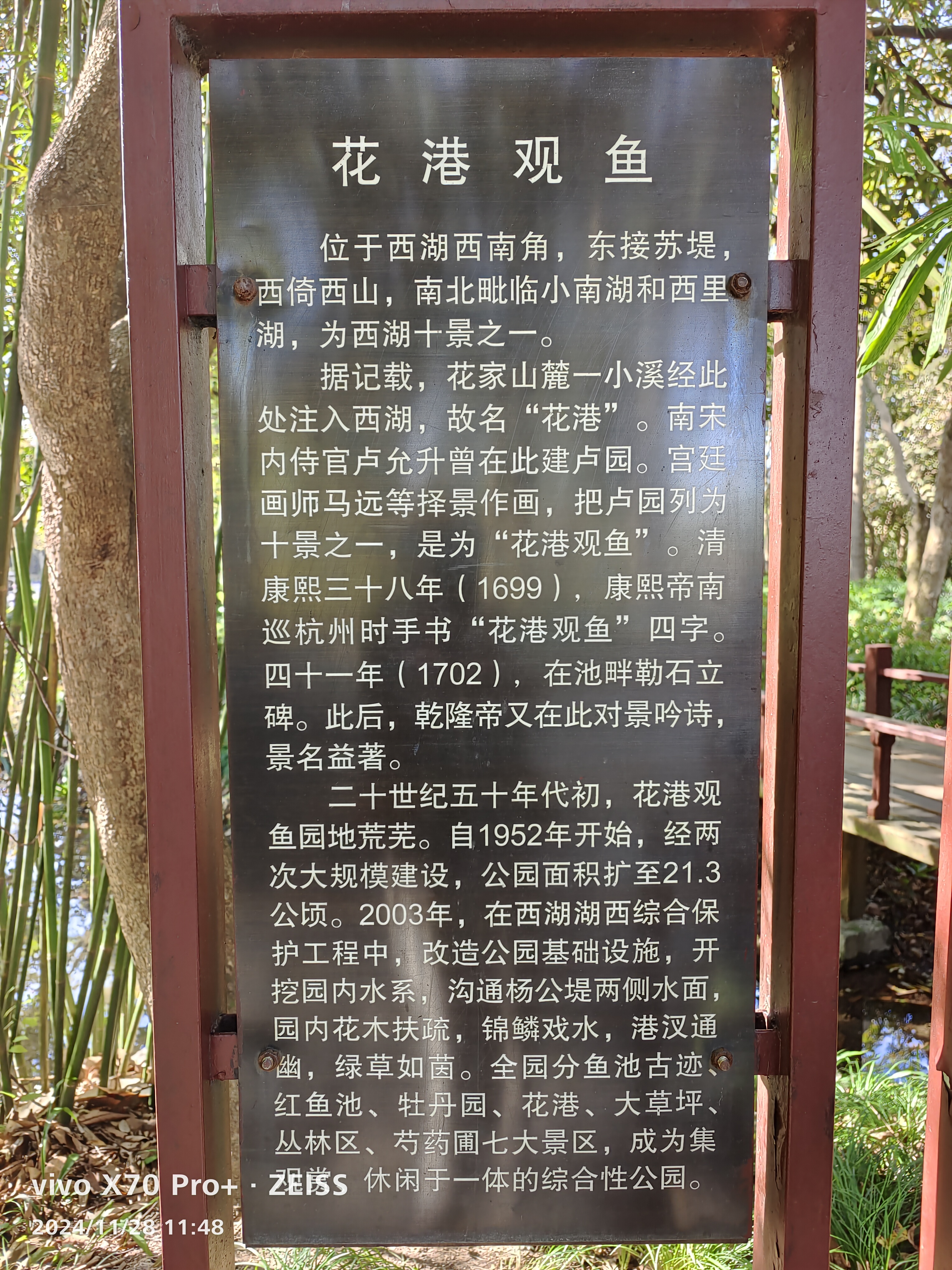 2024年11月28日上午11点10分结束胡雪岩旧居的参观,乘139路公交前往西湖苏堤,11点40分下公交到达苏堤的南头花港观鱼景区。