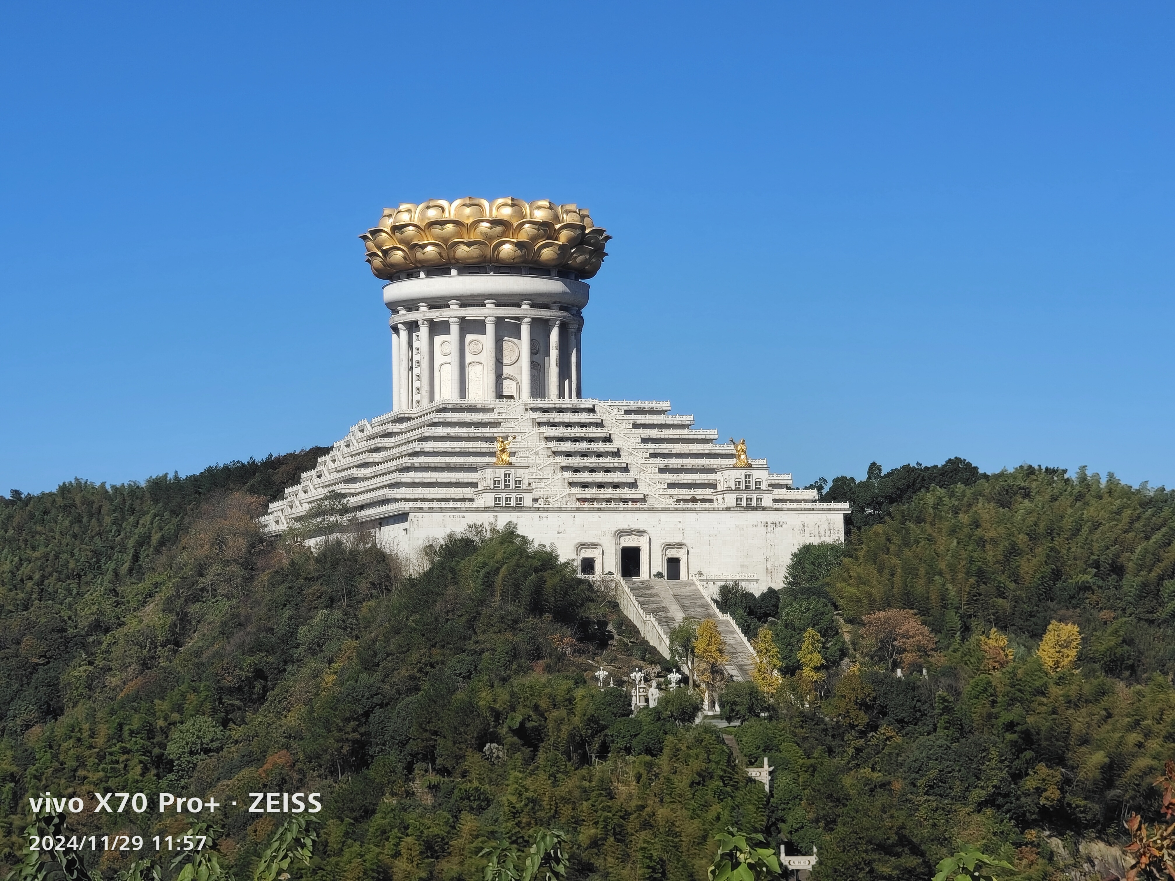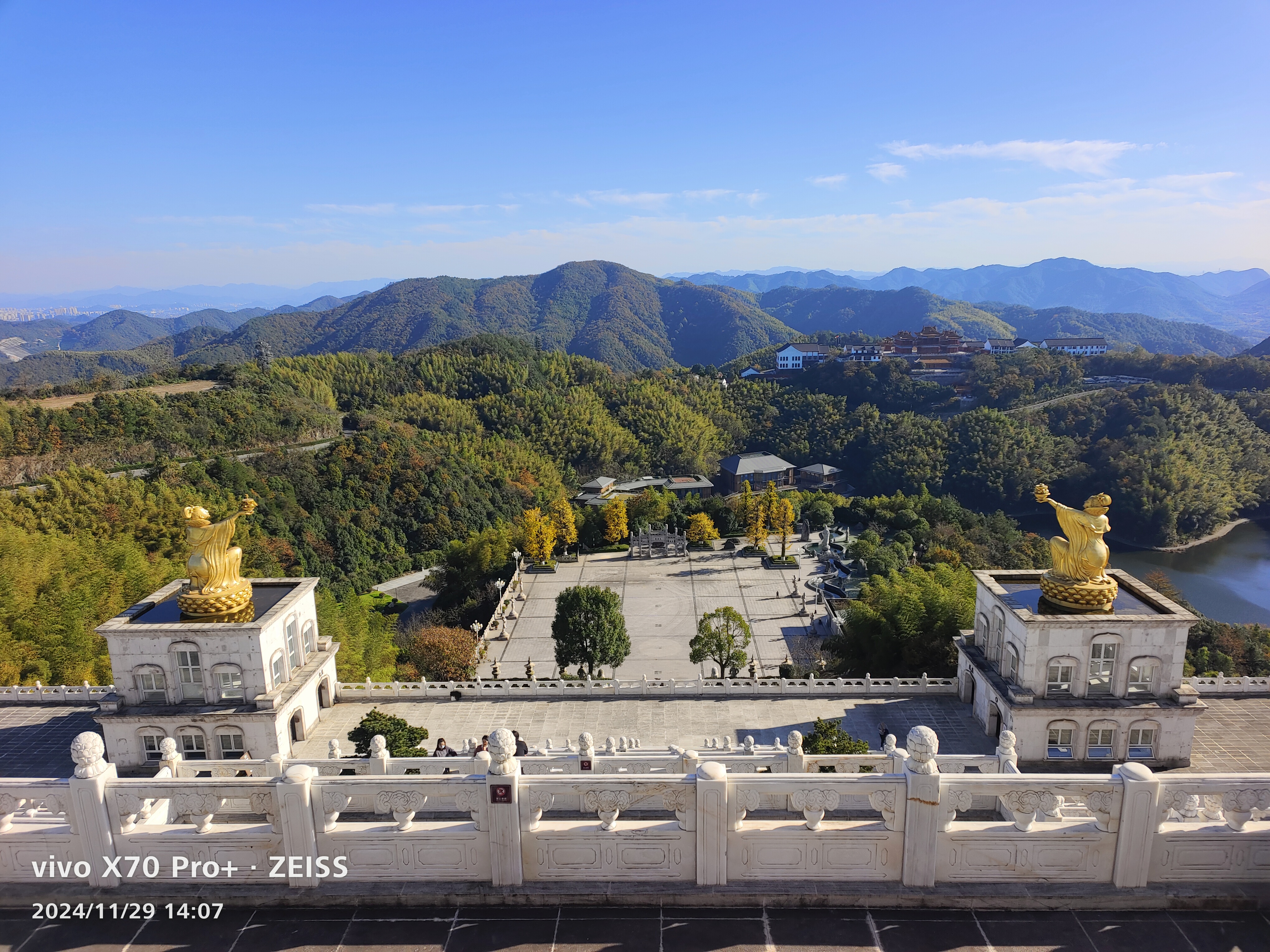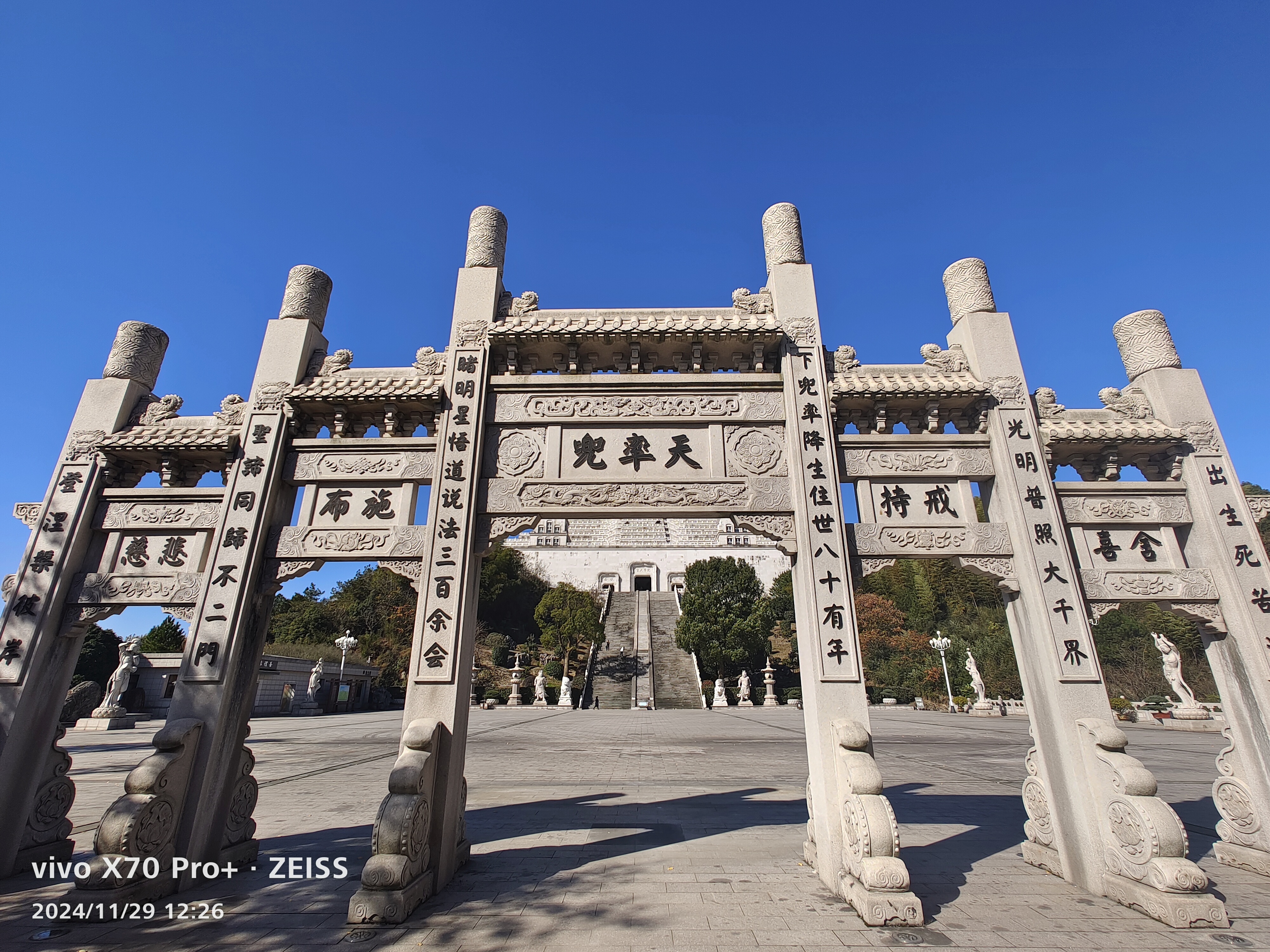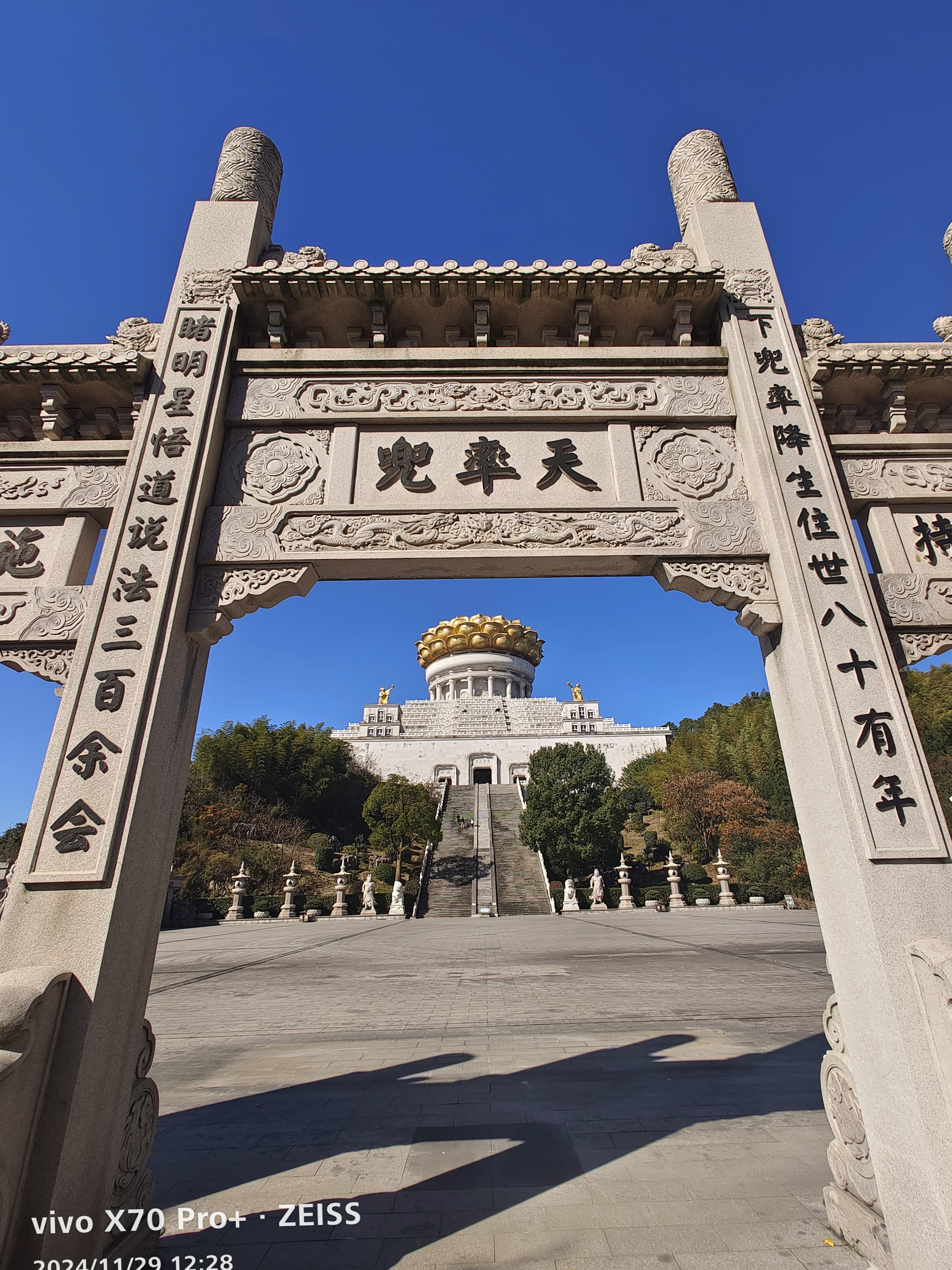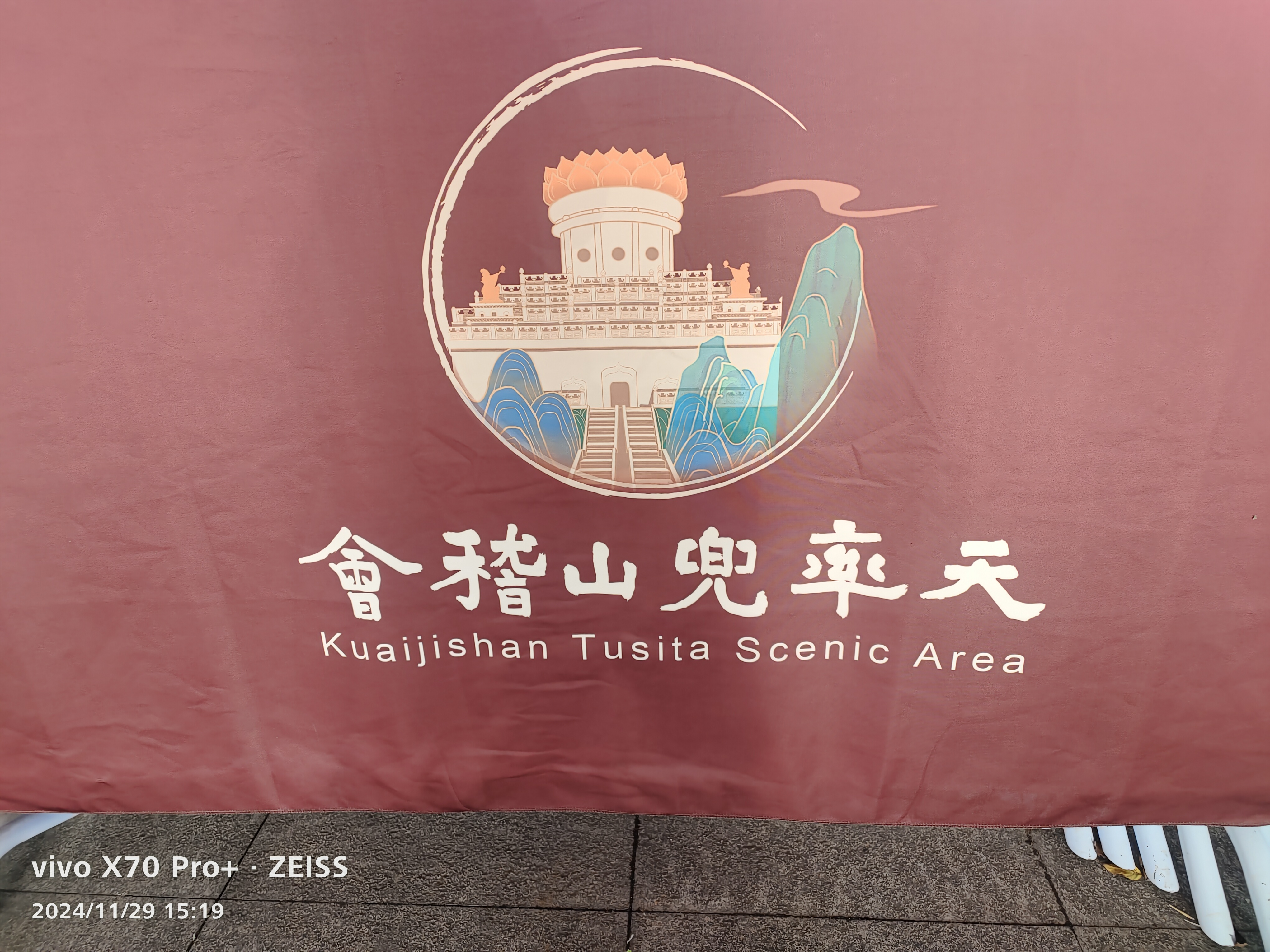 11月29日早晨在酒店吃早餐,由于酒店接一旅游团,餐厅一片狼藉,我们简单吃过,9点半才出发乘111路再转177路前去绍兴兜率天宫景区,到景区游客中心已经中午11点20分,然后坐观光车每人10元到龙华寺,再乘小观光车每人5元到兜率天宫,一路乘车转车,12点20分才到兜率天宫。