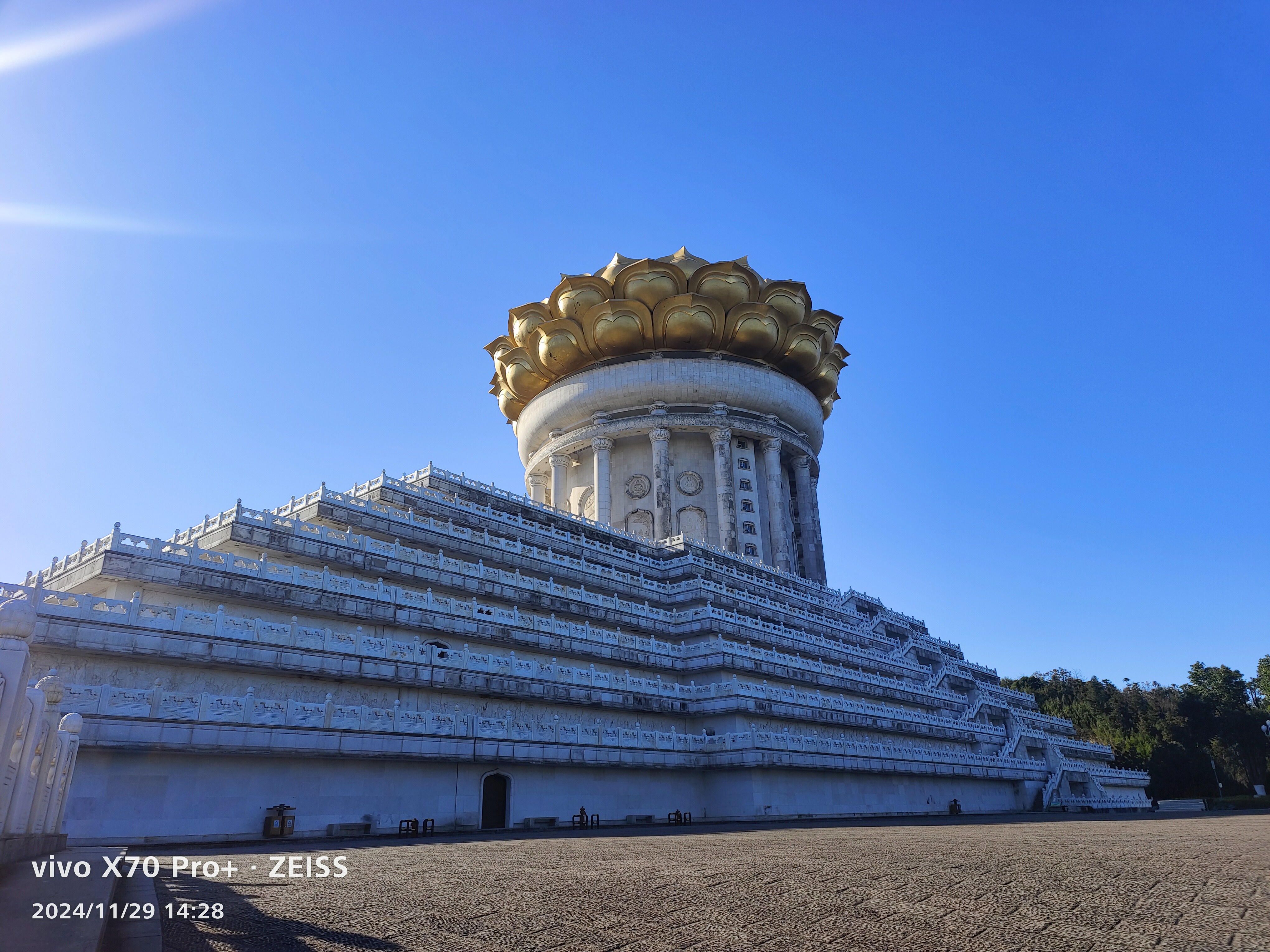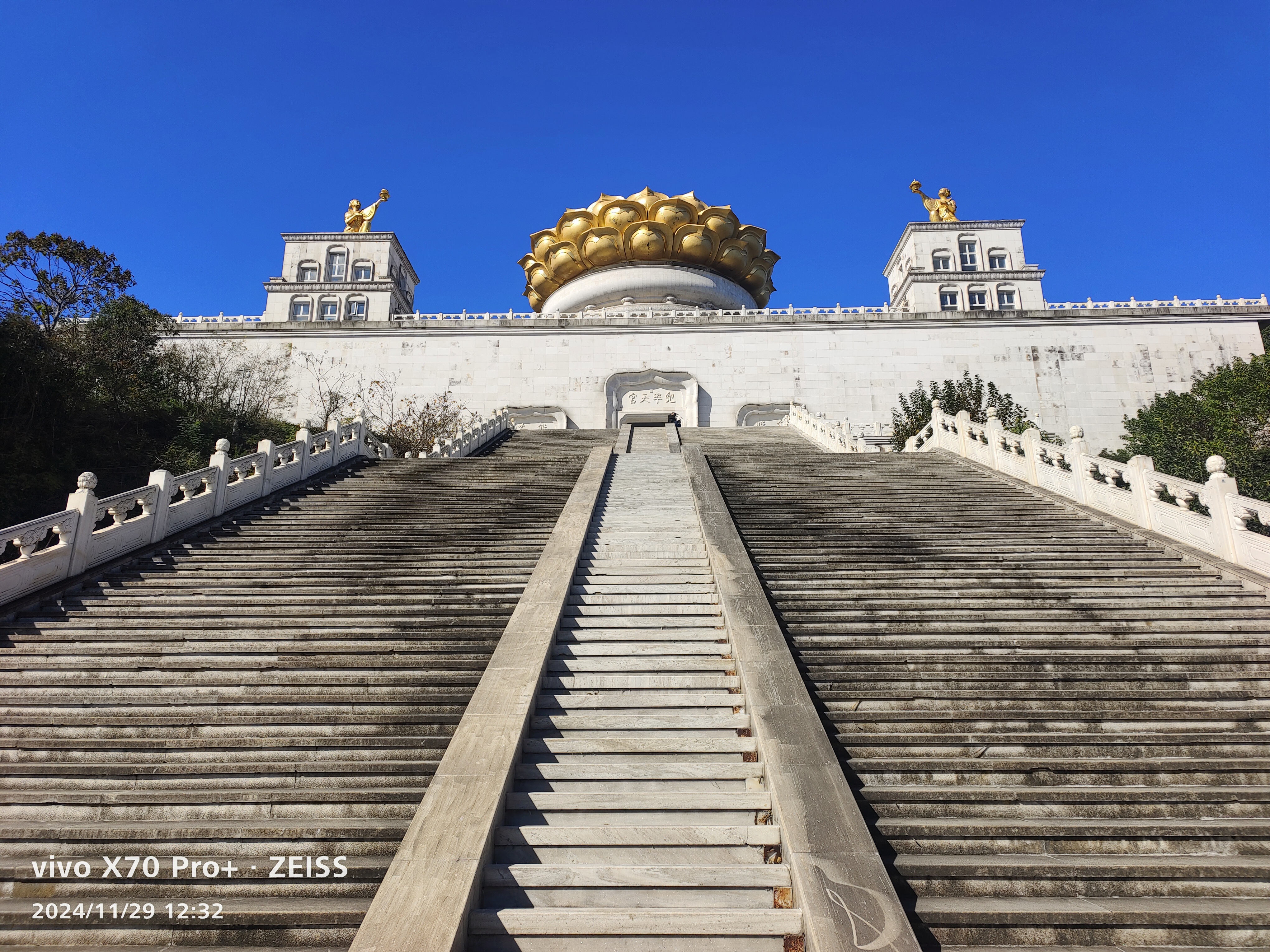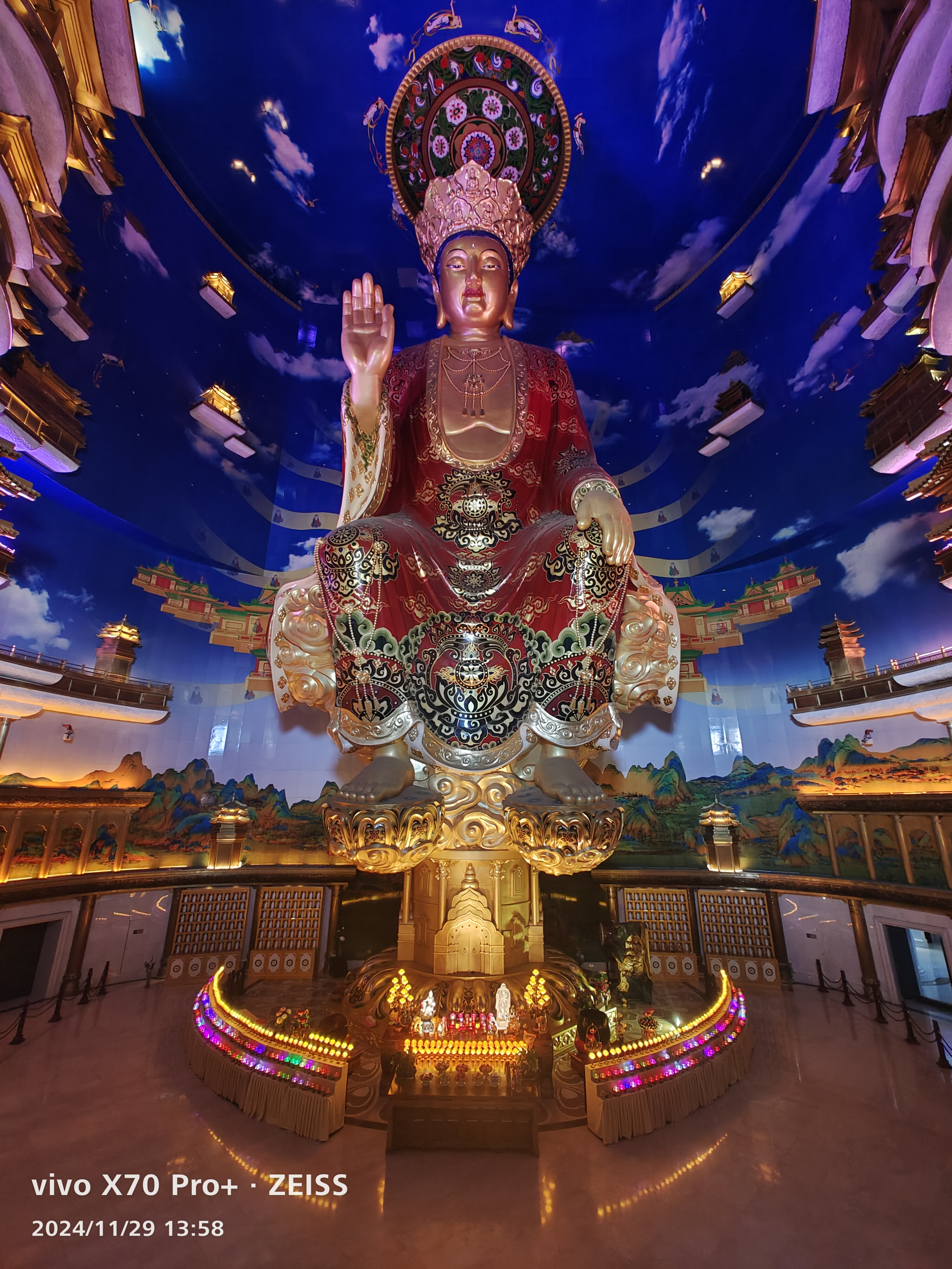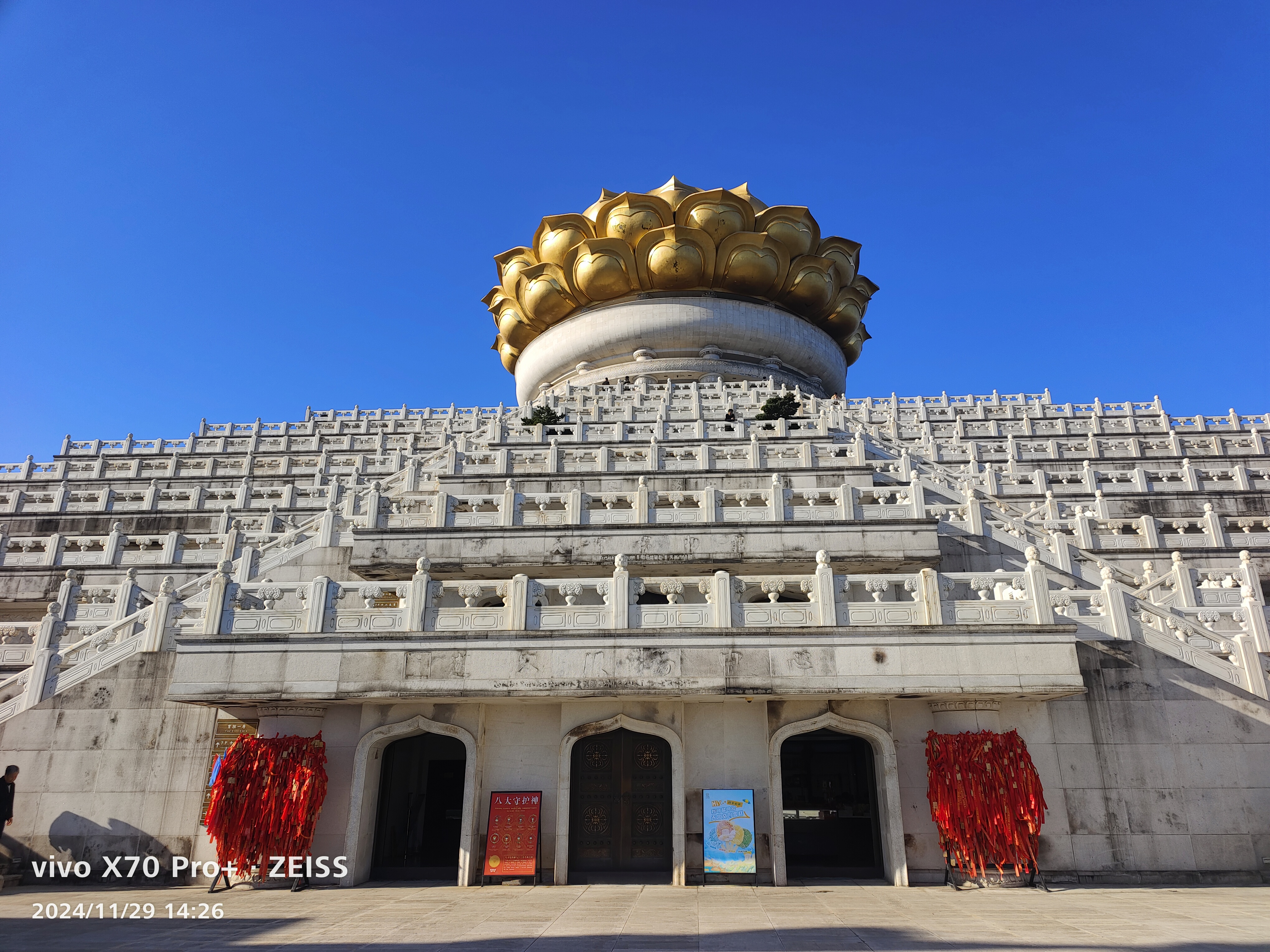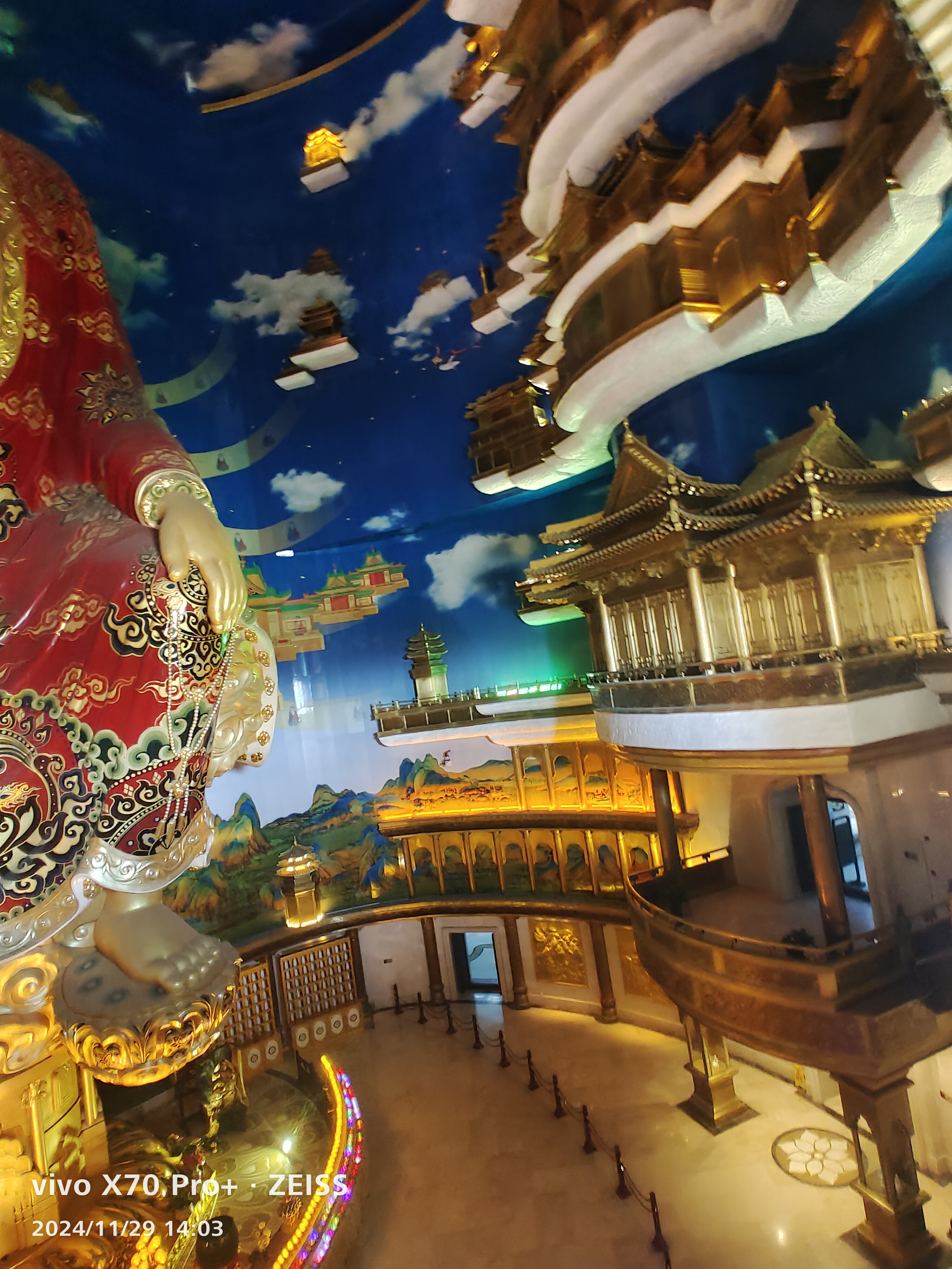 从龙华寺有小观光车到兜率天宫,当然它是景区的核心区域,沿着台阶一层层到达最高层,可以看到世界第一高室内大佛,它庄严肃穆,金碧辉煌,令人景仰。