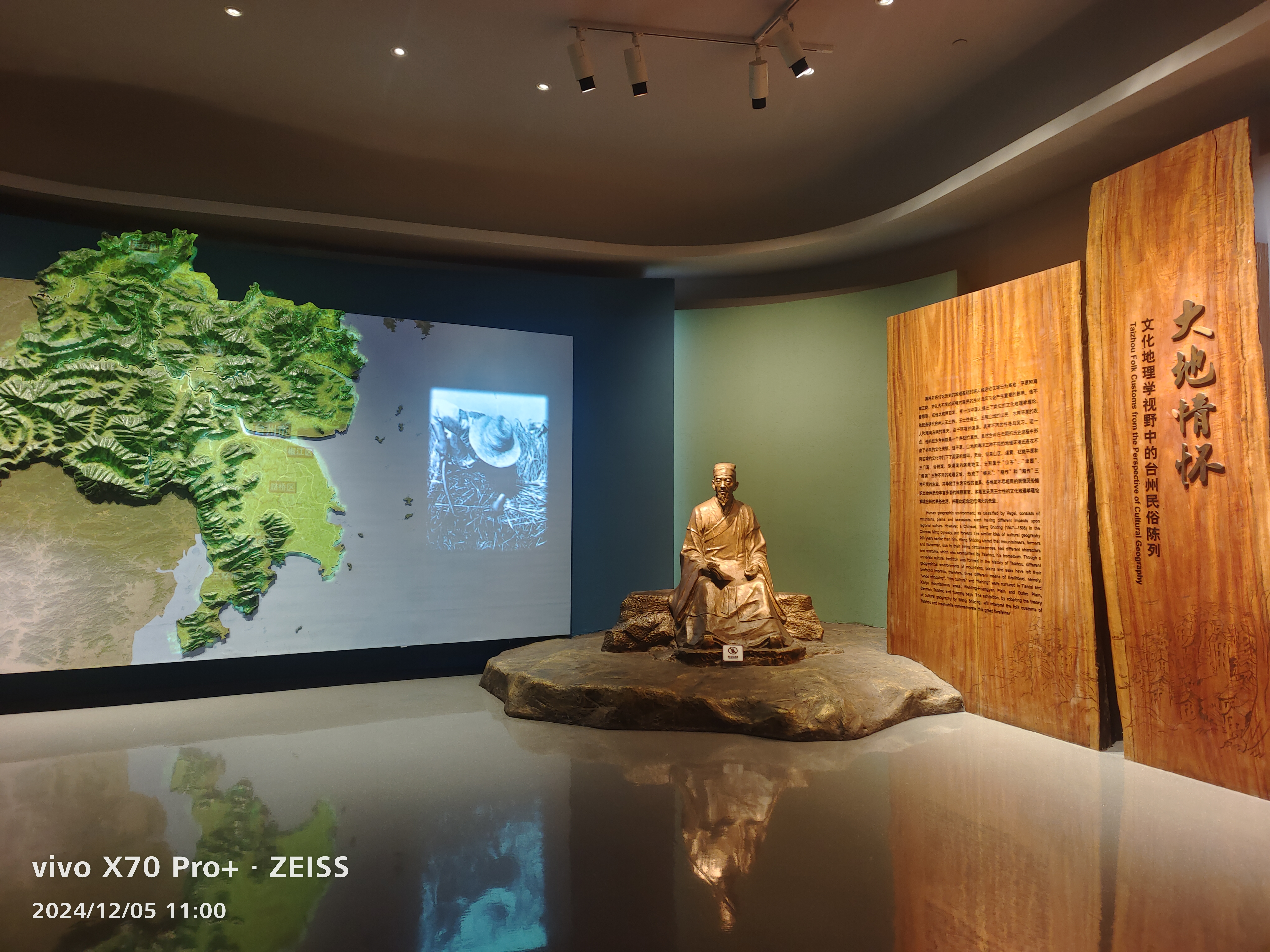 “大地情怀”民俗厅采用明代人文地理学家王士性(临海人)的文化地理学理论,从生态、生计、生活三大方面来解读台州山地、平原与海滨地区人民的生存状态及风习民俗,描绘出一幅山谷之民、泽国之民、海滨之民多元交融、丰富多姿的绚丽画面。