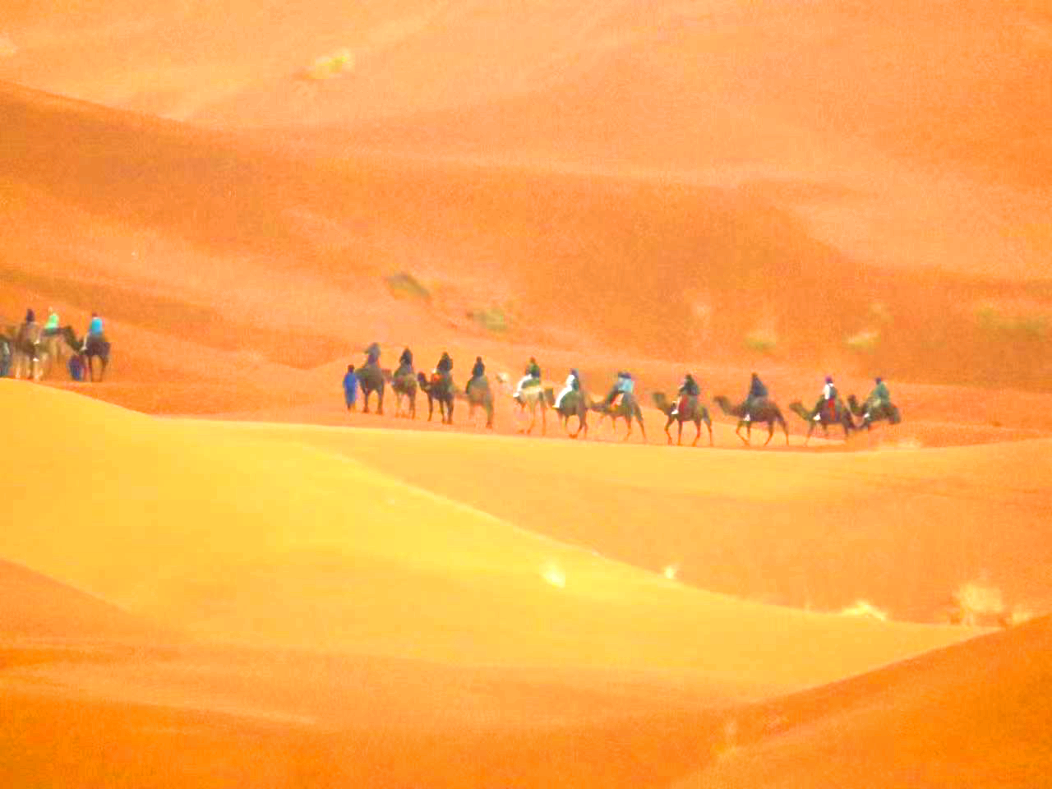 梅尔祖卡沙丘的高度有时候可以达到150米。在这个沙丘中,我们可以观赏到狂野而耀眼的景色,可以看到随风而动的沙海。