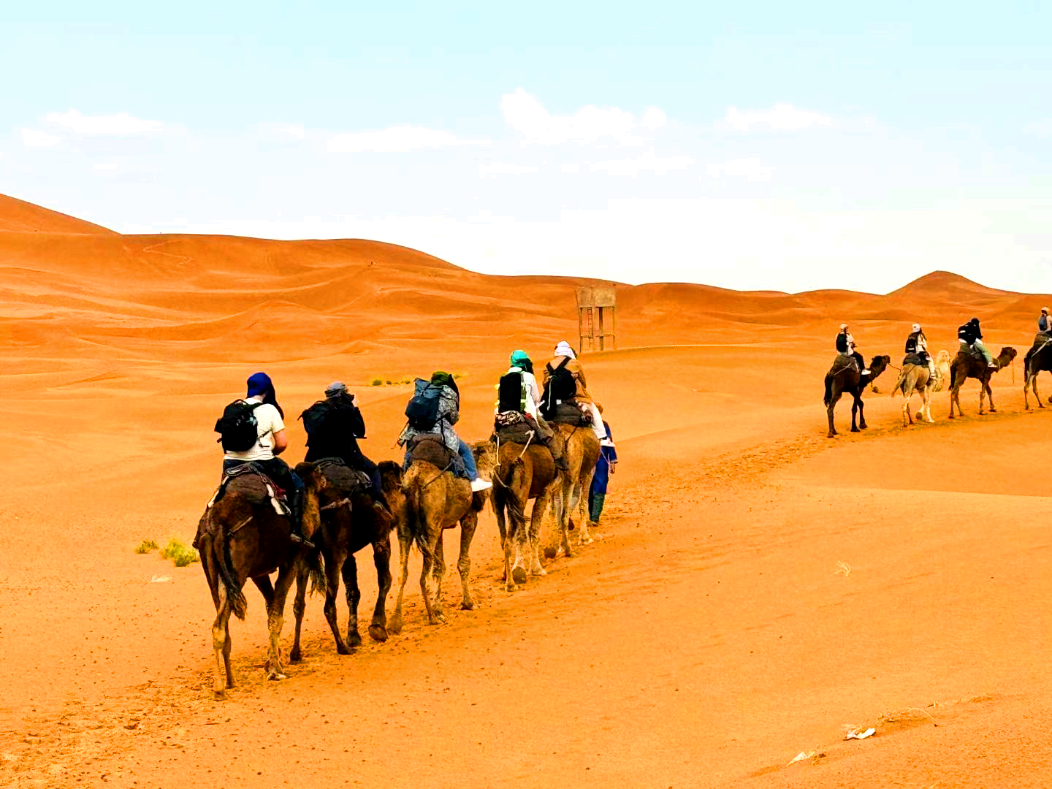 梅尔祖卡不仅是一个旅游目的地,更是一个深入了解撒哈拉沙漠文化的绝佳地点。游客可以参加沙漠生态导览,了解沙漠生态系统的奥秘;还可以参观当地的沙漠村落,与当地居民交流互动,深入了解他们的生活方式和传统文化。在这里,游客可以骑骆驼穿越沙丘,感受沙漠日落的壮丽;也可以在夜晚仰望星空,享受银河的璀璨。