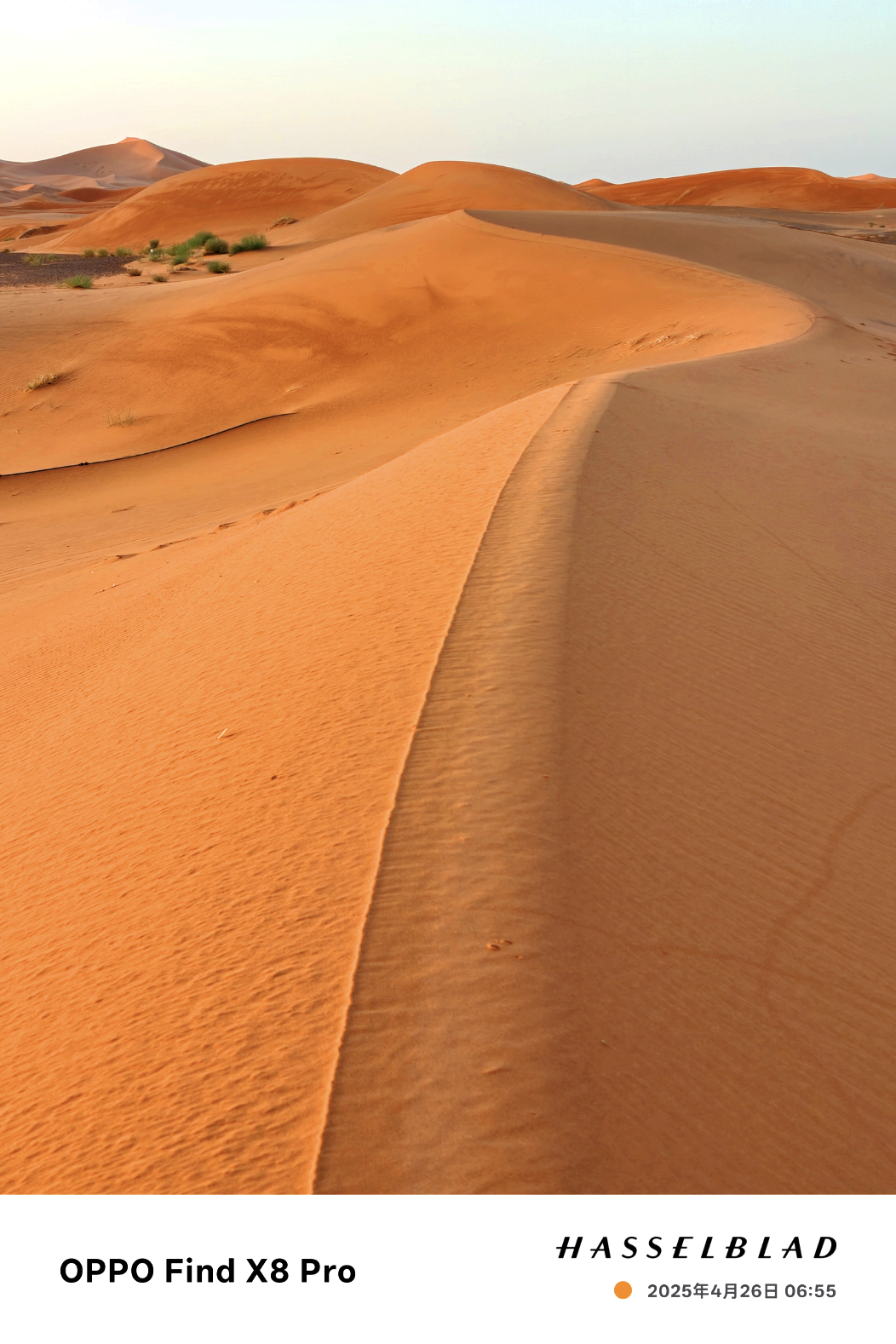 沙丘的颜色是黄色或者赭石色,在一天之内一直在变化。中午,阳光直射沙丘,沙丘表现出黄色的景观。在早晨和傍晚,我们可以看到沙丘里阴影交错,光影结合,沙丘表现出美丽的橙色景观。山丘日落时的景色和日出的景色,美到无法用言语来形容。