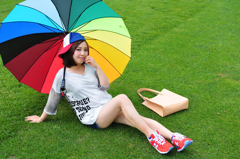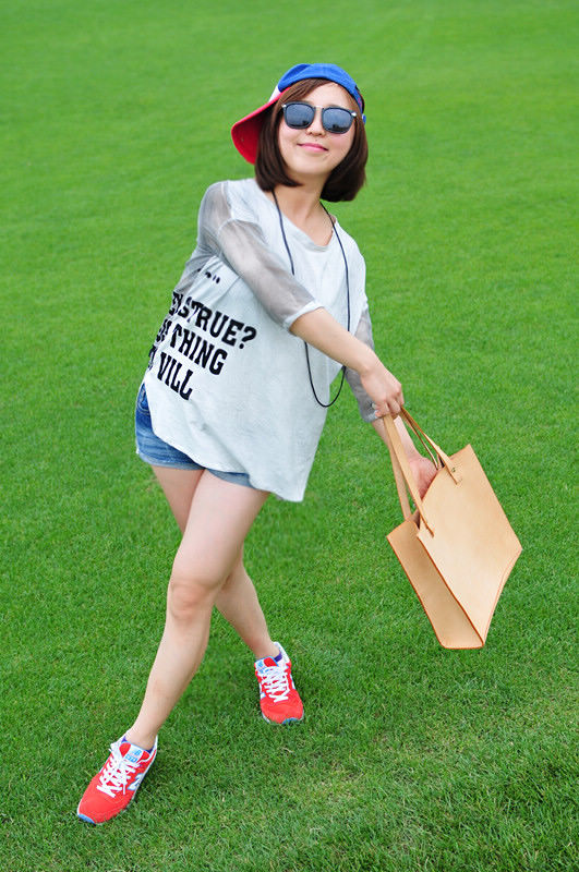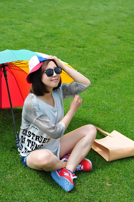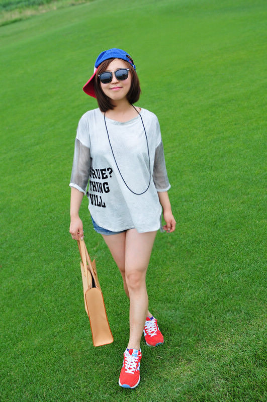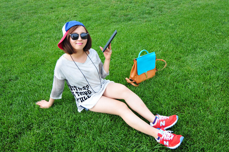 红色的鞋子和绿色草地走起来了~