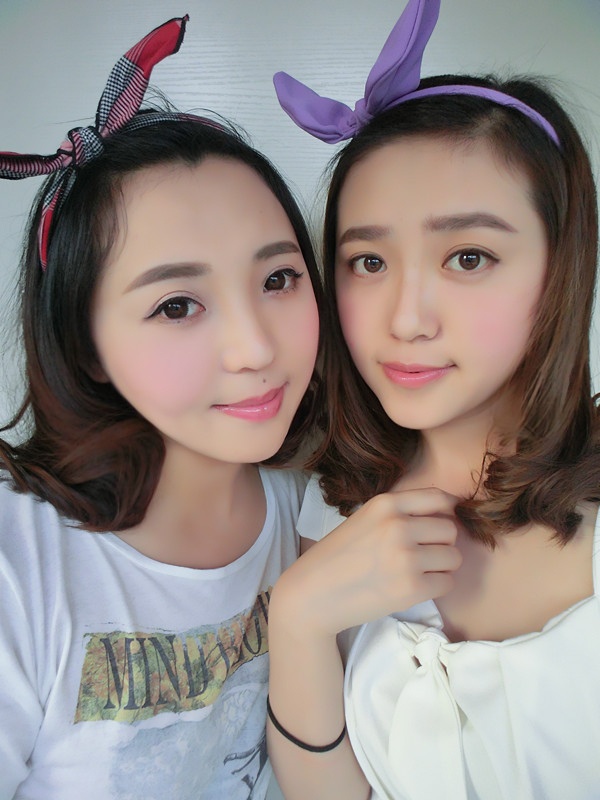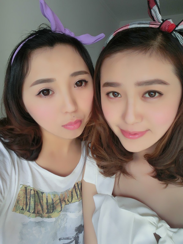 今天给大家做个大对比,她没有佩戴美瞳,我有佩戴,